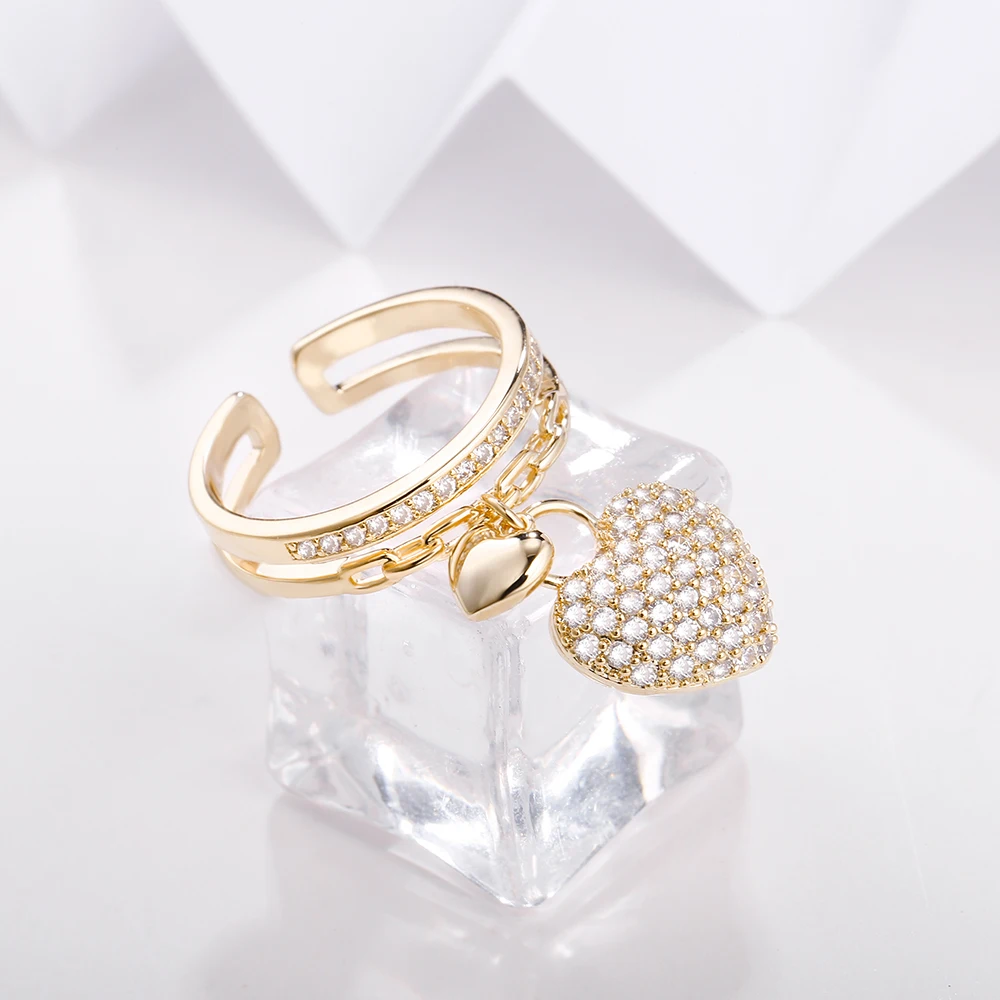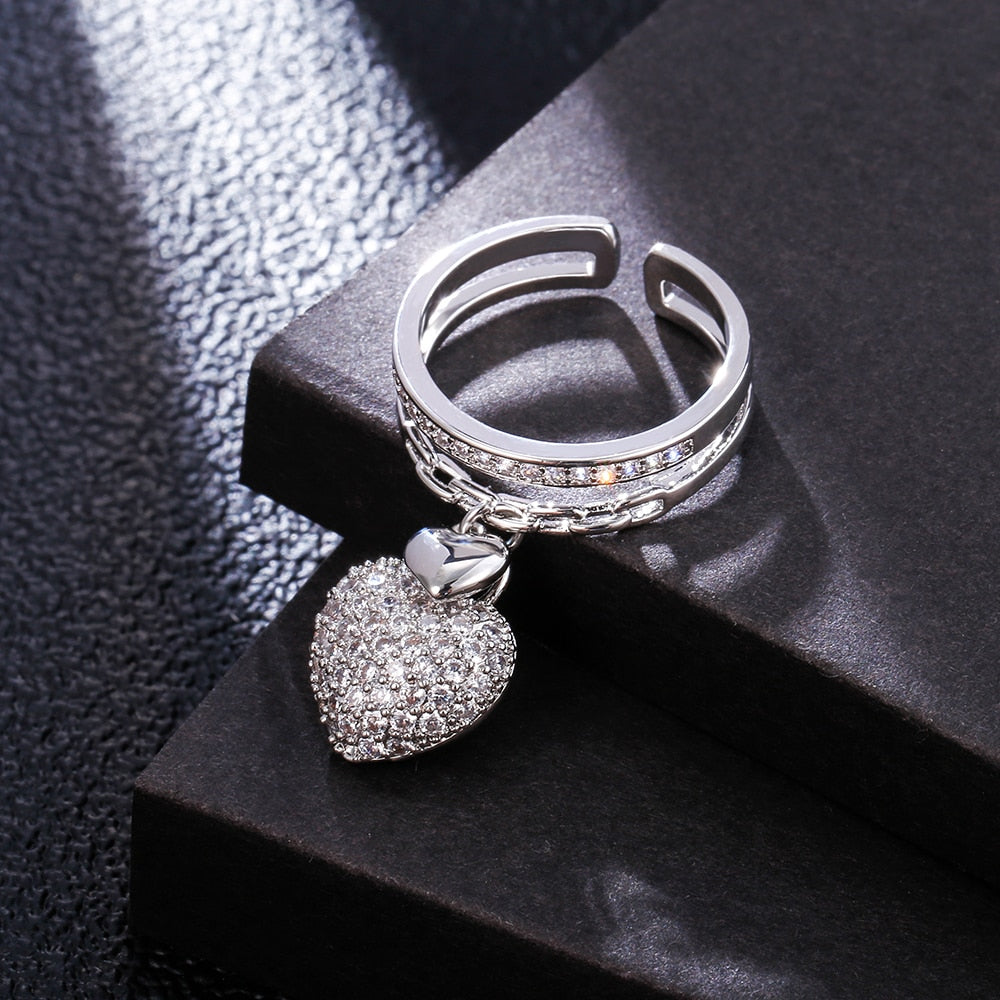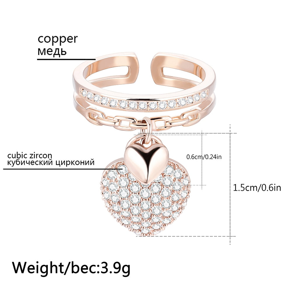 Rose Gold Silvery Heart Pendant Zircon Rings For Women Adjustable Engagement Promise Finger Ring Female Wedding Jewelry 2022