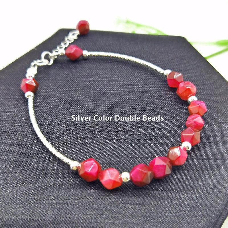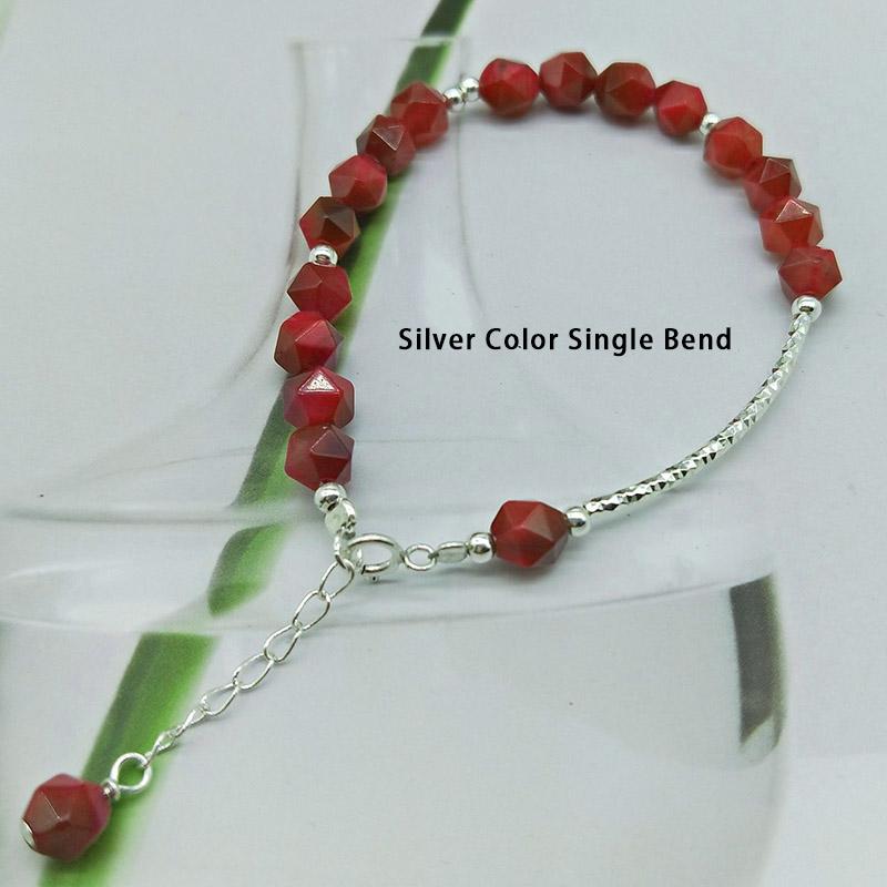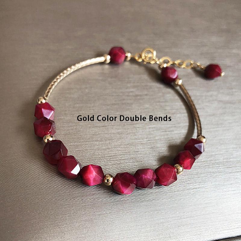 Rose Red Natural Tiger's Eye Stone Beads Bracelets For Women 925 Sterling Silver Gold Plated Faceted Cystal Beaded Bracelet