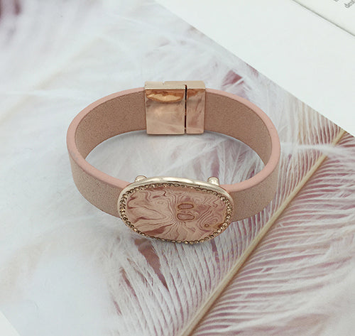 Round Alloy Fashion Rhinestone Bracelets & Bangles for Women Wide Leather Chain Magnet buckle Jewelry pulseiras bijoux femme
