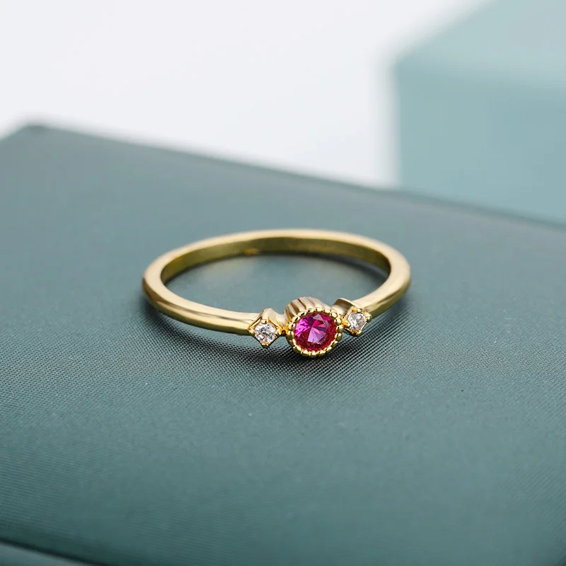 Round Cubic Zirconia Rings For Women Crystal Gold Color Birthstone Ring Wedding Couple Jewelry Birthday Gift anillos
