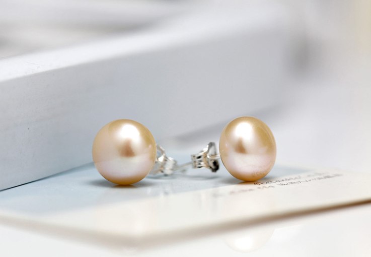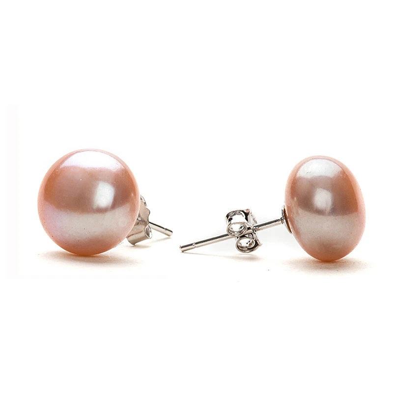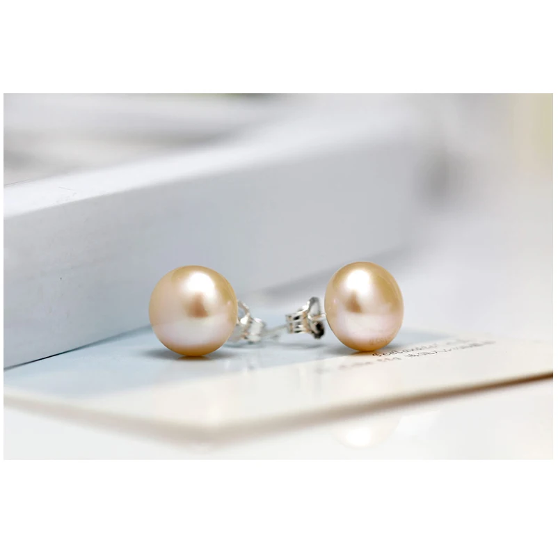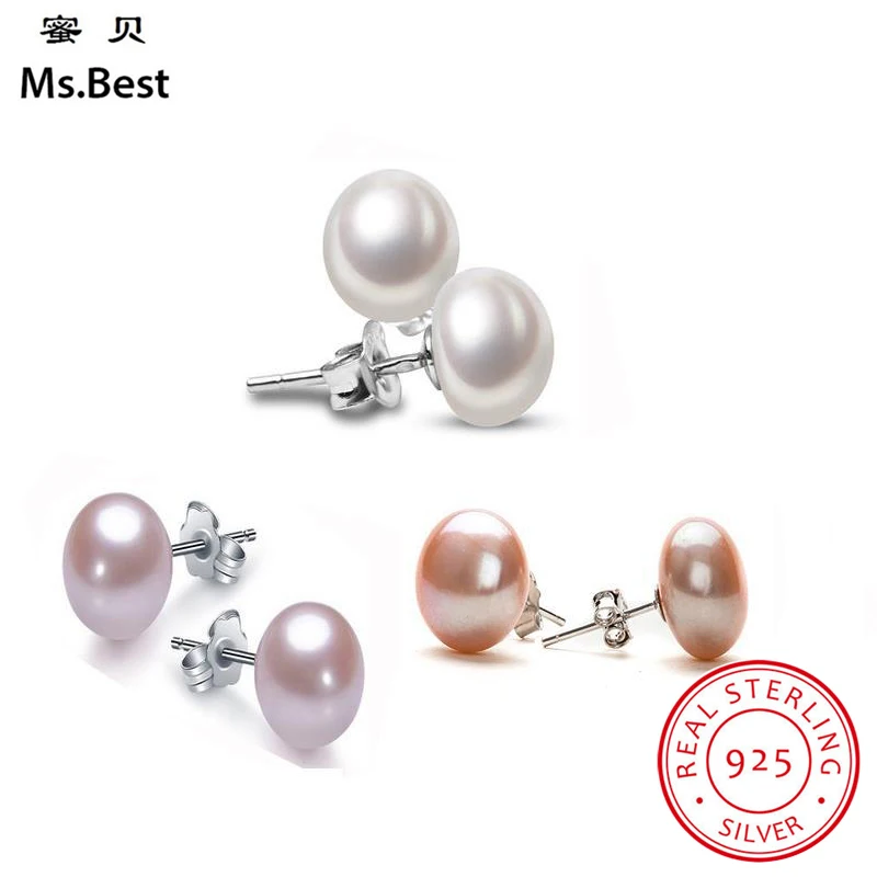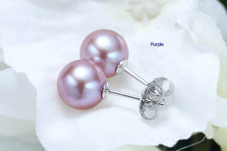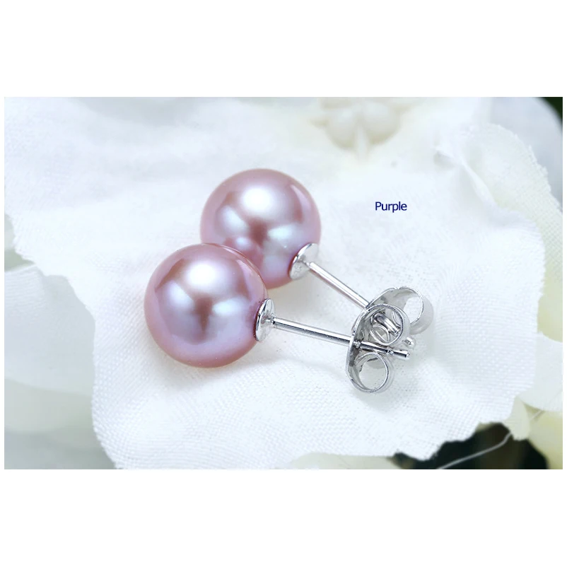 Round Fresh Water Pearl earring Studs 925 Sterling Silver ear stud for Women White Pink Purple 3 Colors Fine Natural Pearl