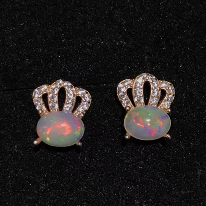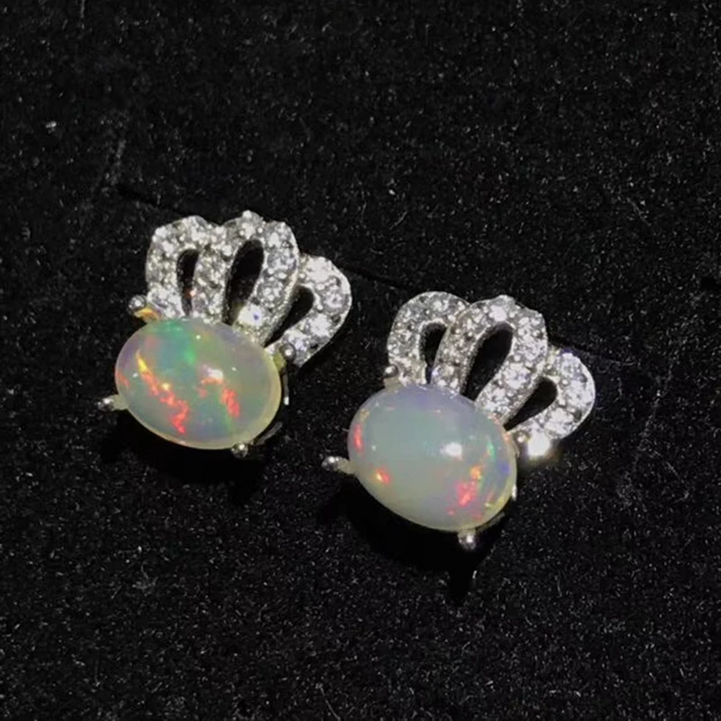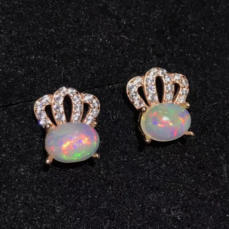 Ro stud earrings for party 5 mm * 7 mm natural Australia opal silver earrings solid 925 silver opal earrings