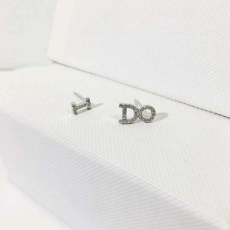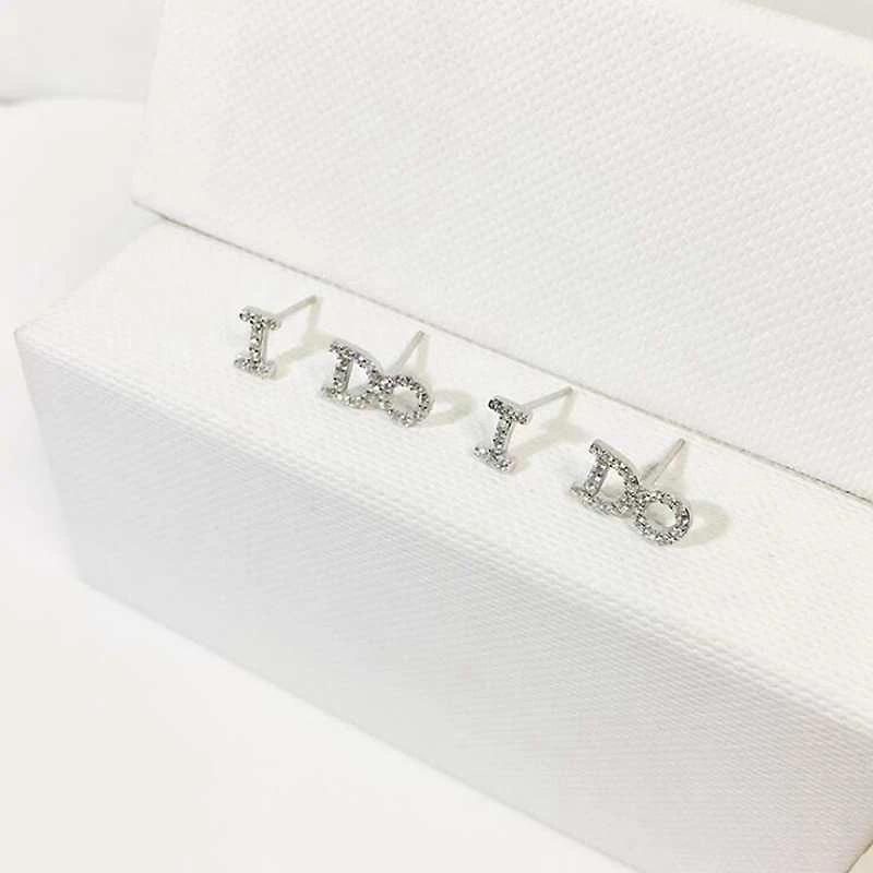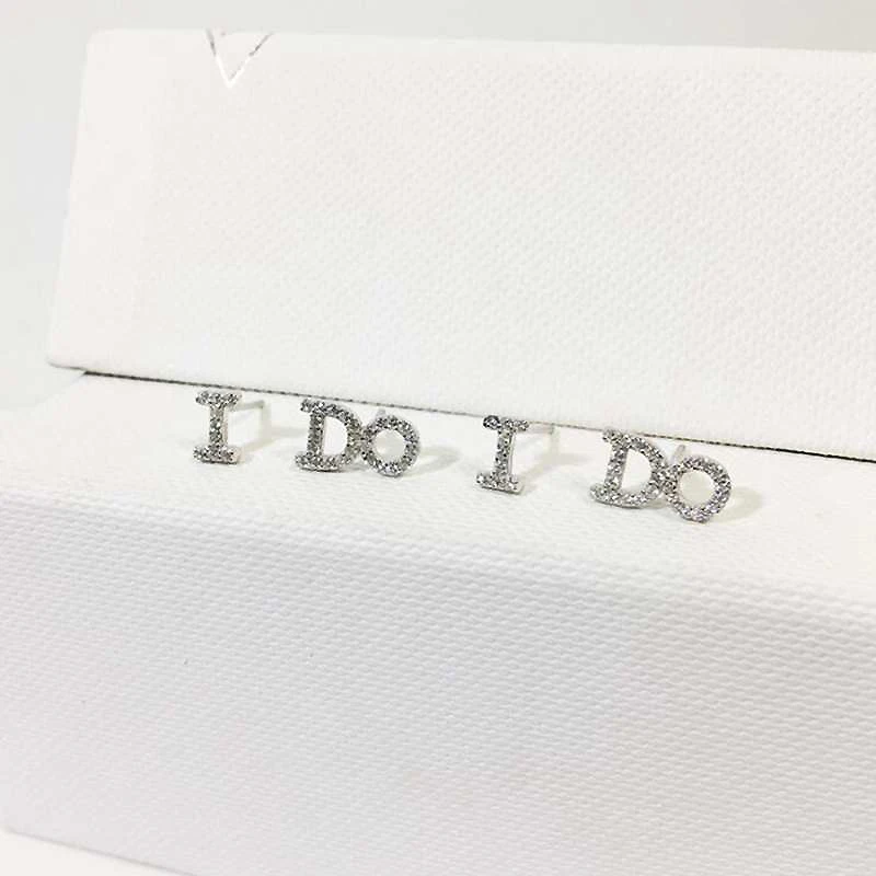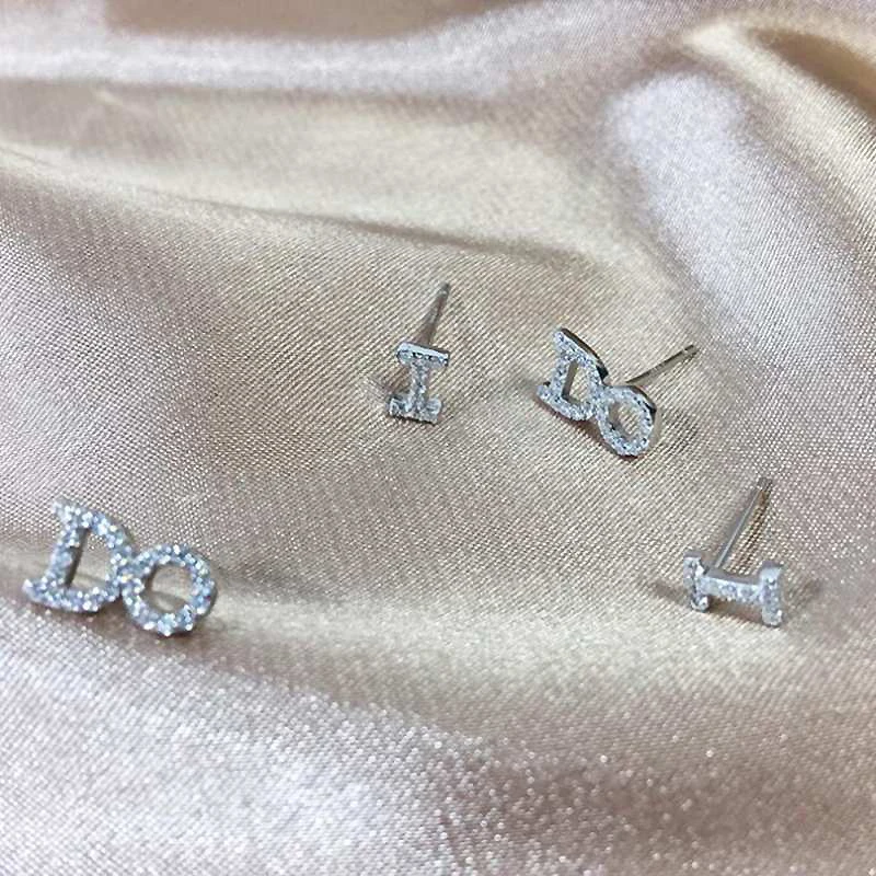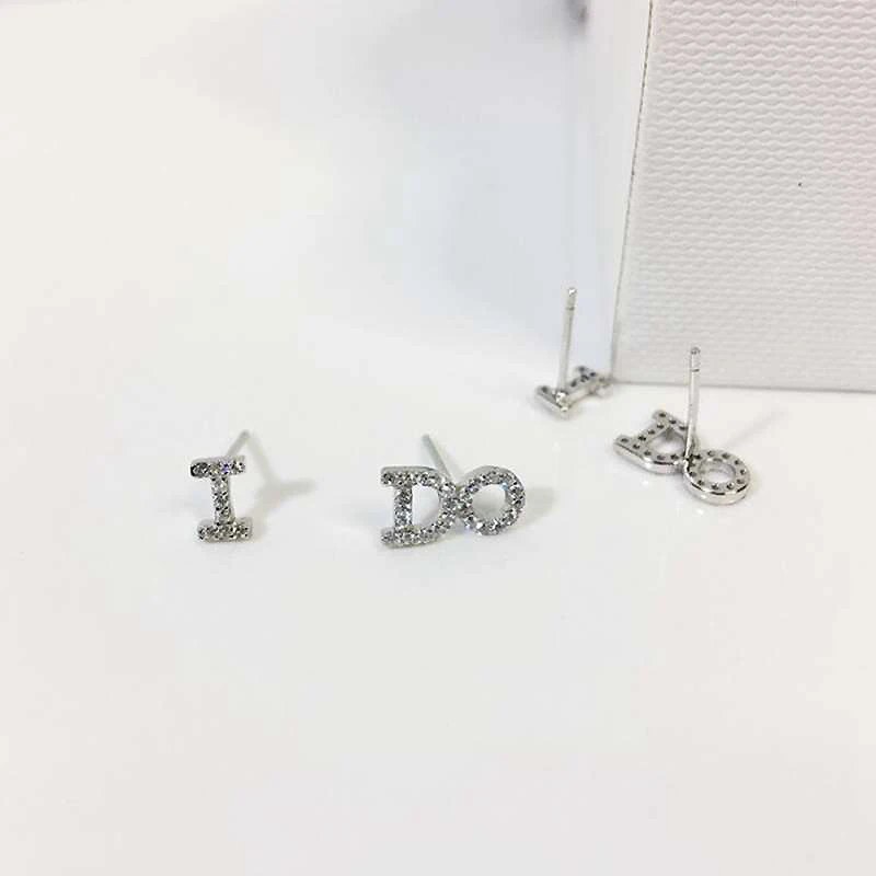 Asymmetrical I Do Letter Shape 925 Sterling Silver Small Stud Earrings for Women Korean Fashion CZ Zircon Jewelry YEA099