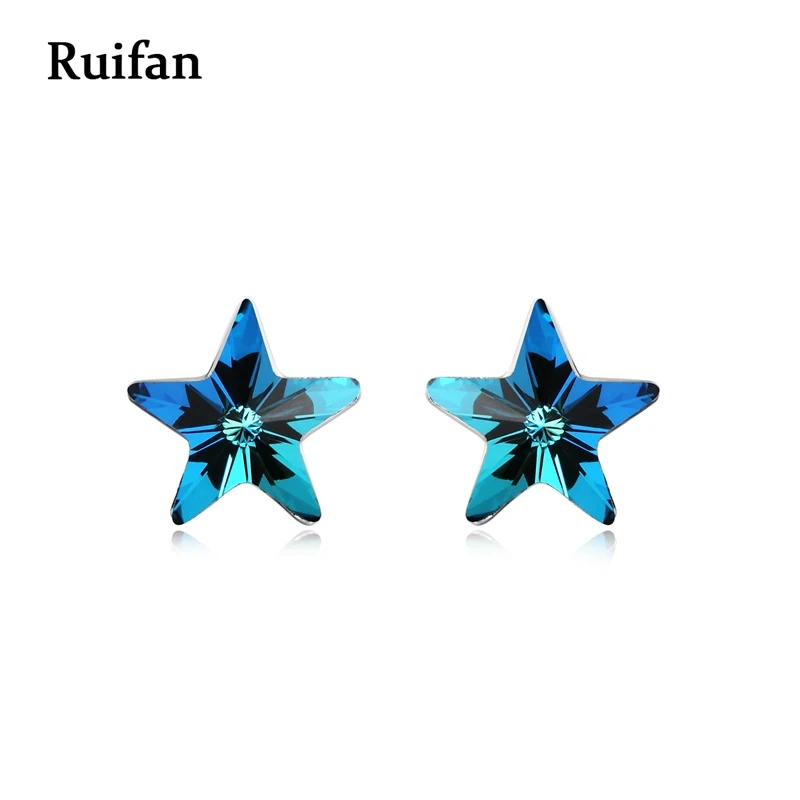 Blue Pentagram Star Svarowsky Crystal 925 Sterling Silver Stud Earrings for Women Wedding Party Small Earrings YEA029