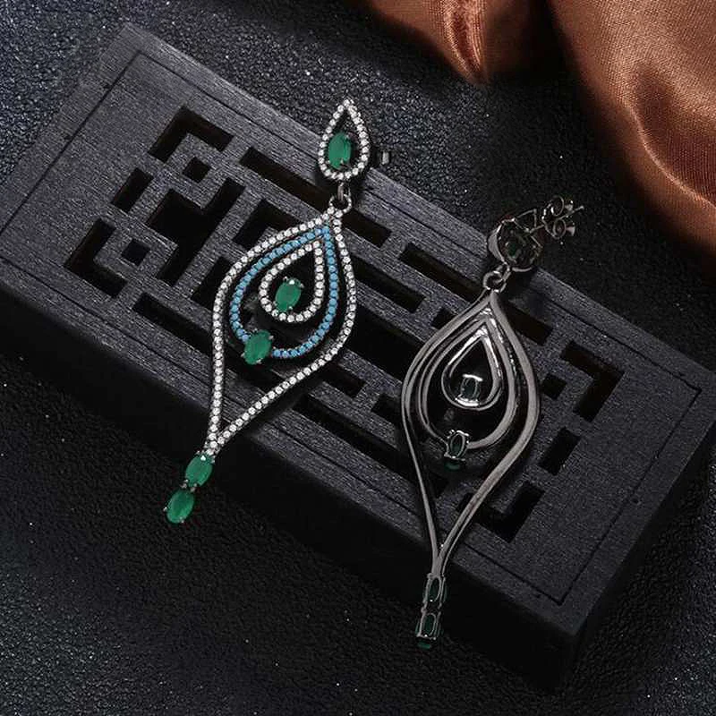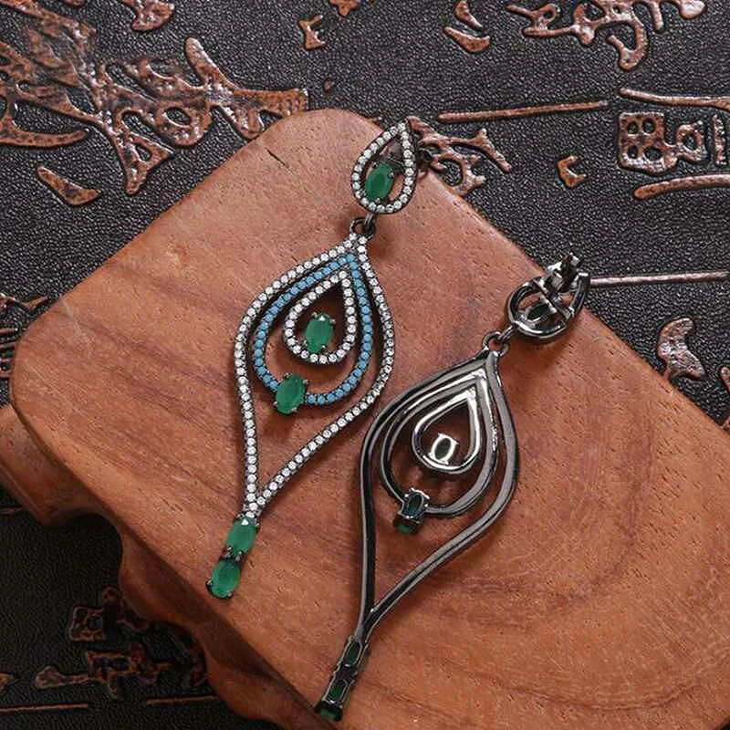 Ethnic Turquoise/Cubic Zirconia/Glass Drop Earrings for Women Black Color 925 Sterling Silver Earrings 2020 Gift YEA162