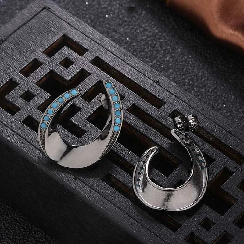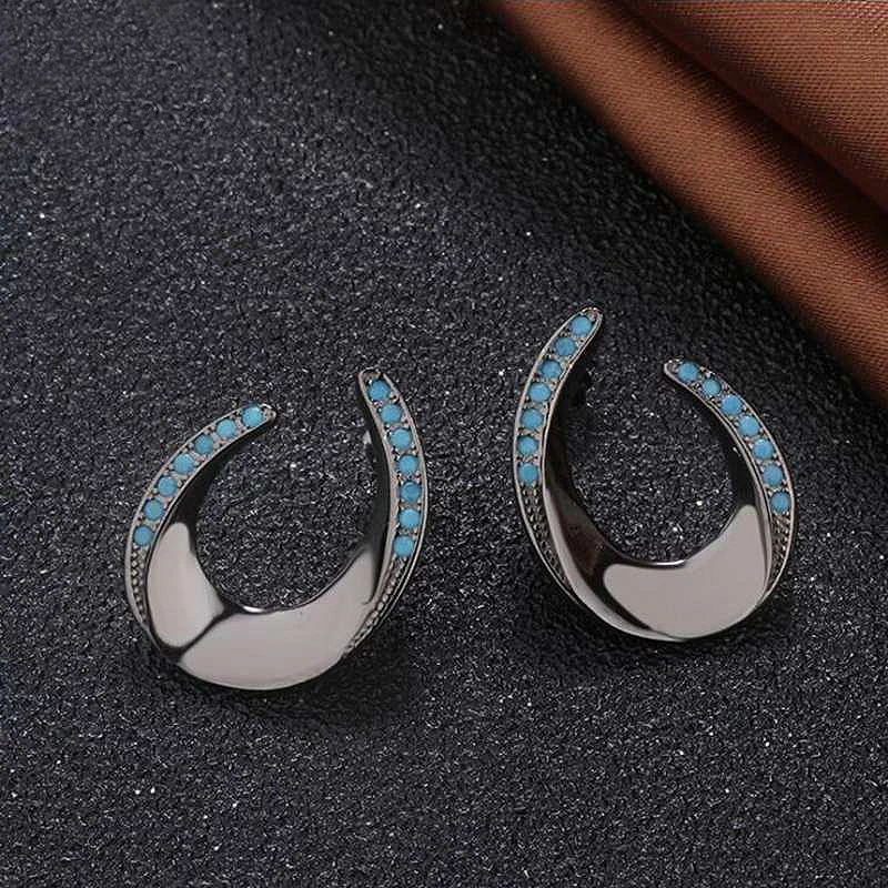 European Personalized U Shape Turquoise Stud Earrings for Women Black Color 925 Sterling Silver Party Jewelry Gift YEA164