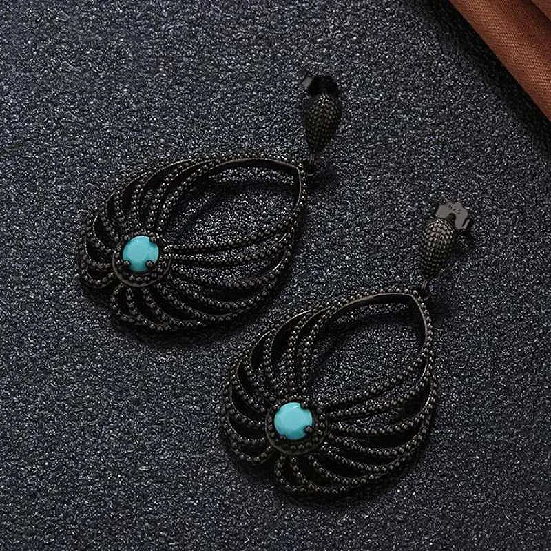 European Turquoise Drop Earrings for Women Female Black Color 925 Silver Jewelry Party Earrings Bohemian Earring YEA170