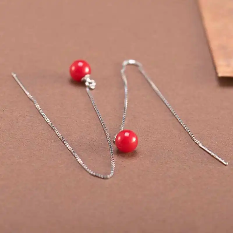 Fashion Red Color Long Line Tassel Pearl Earrings for Women 925 Sterling Silver Drop Earrings with Pearls Jewelry YEA186
