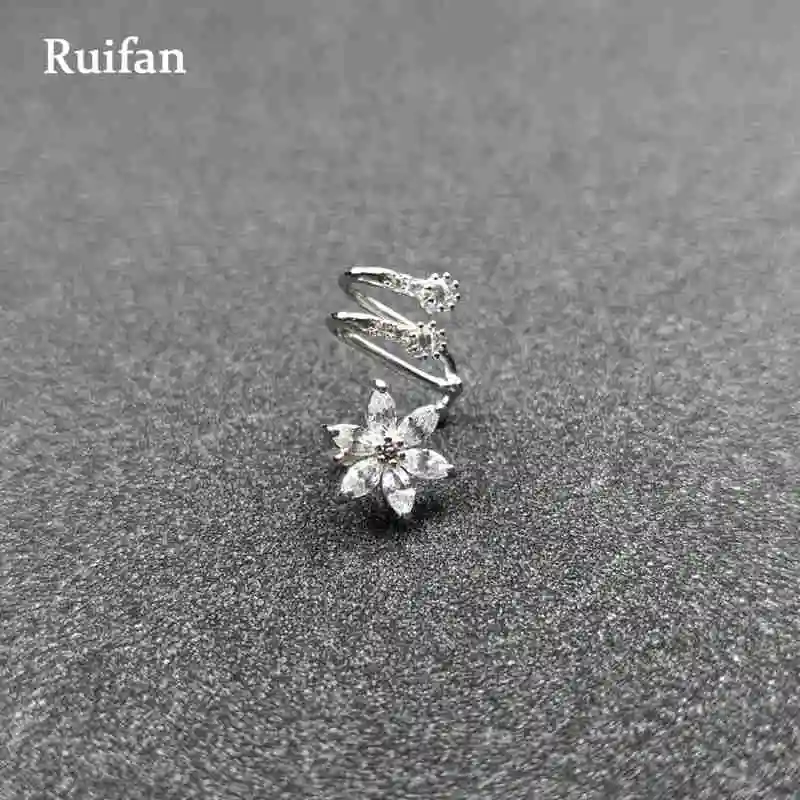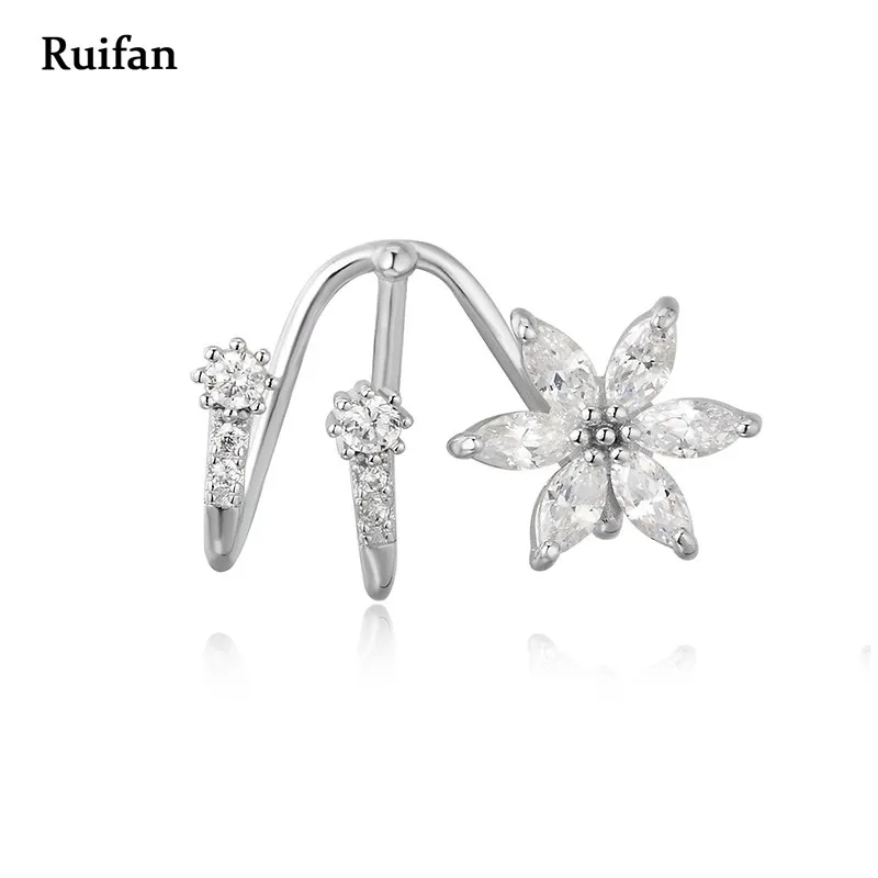 Flower Shape Clear Cubic Zircon Single 925 Sterling Silver Clip Earrings for Women Female Christmas Jewelry Gifts YEA003