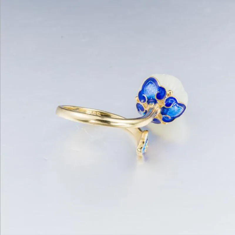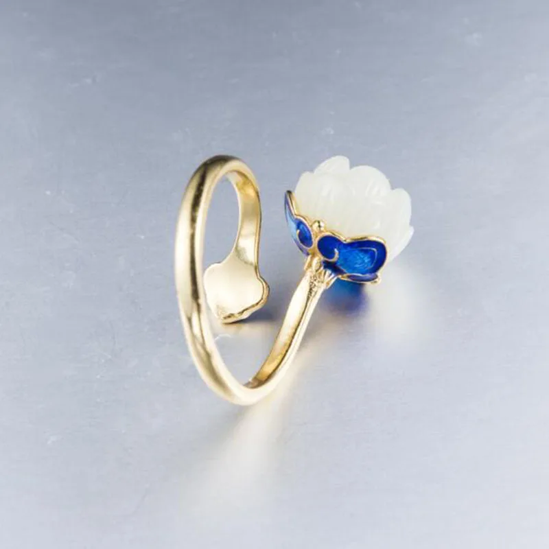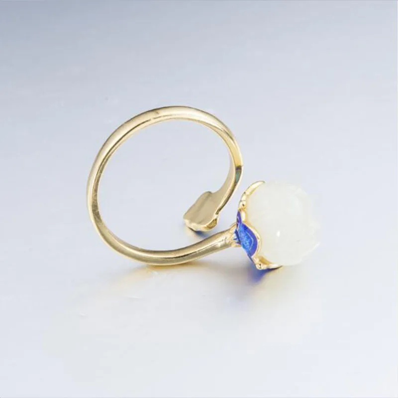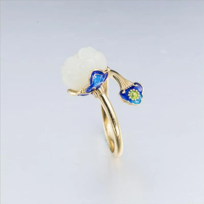 Hetian Jade 925 Sterling Silver Finger Ring Girls Summer Jewelry Cloisonne Teacher Gift Women Adjustable Rings YRI013