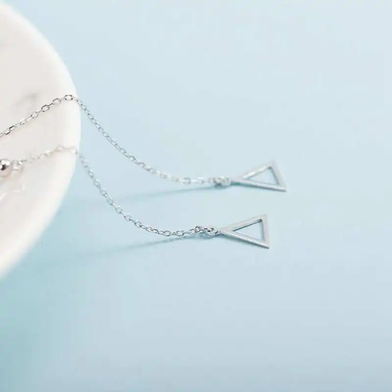 Irregular Tassel Triangle Shape Ear Line Drop Earrings for Women Female 925 Sterling Silver Korean Jewelry Gifts YEA190