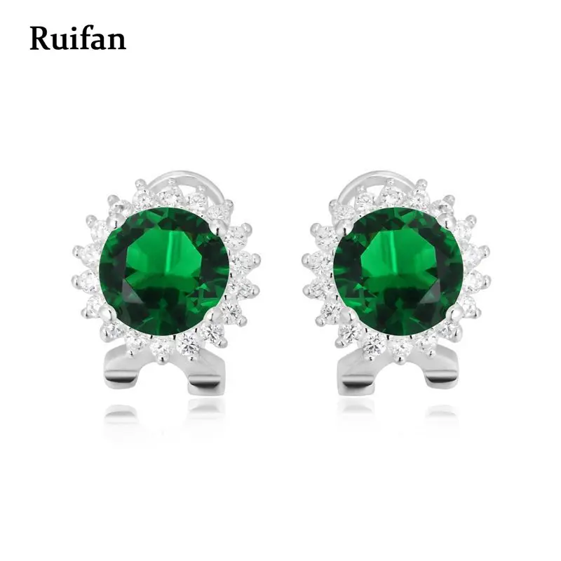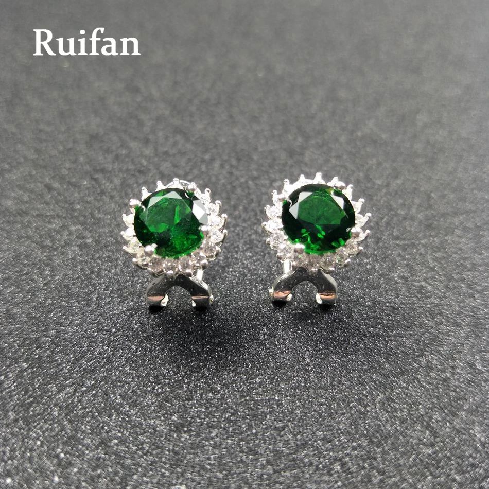 Round Shape Emerald Green CZ Cubic Zircon Stud Earrings for Women Genuine 925 Sterling Silver Earrings 2020 YEA012