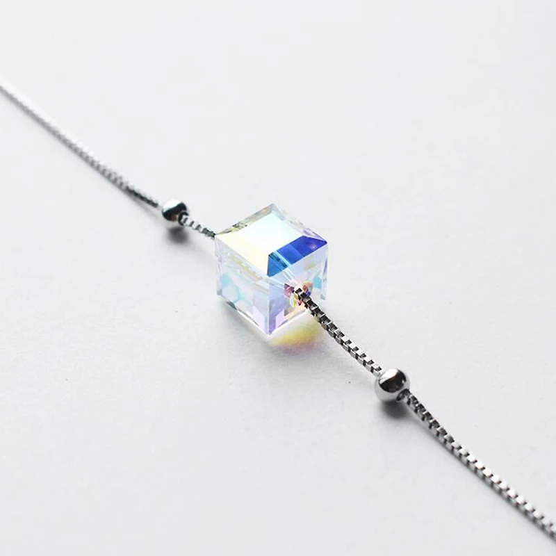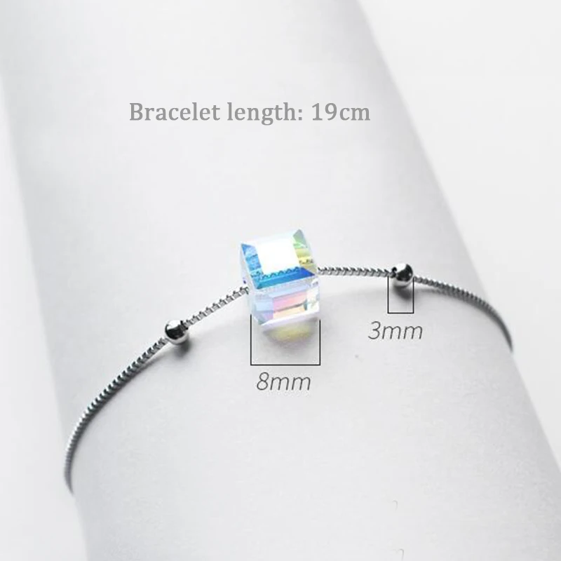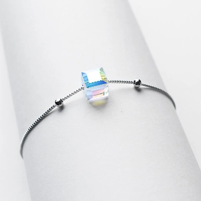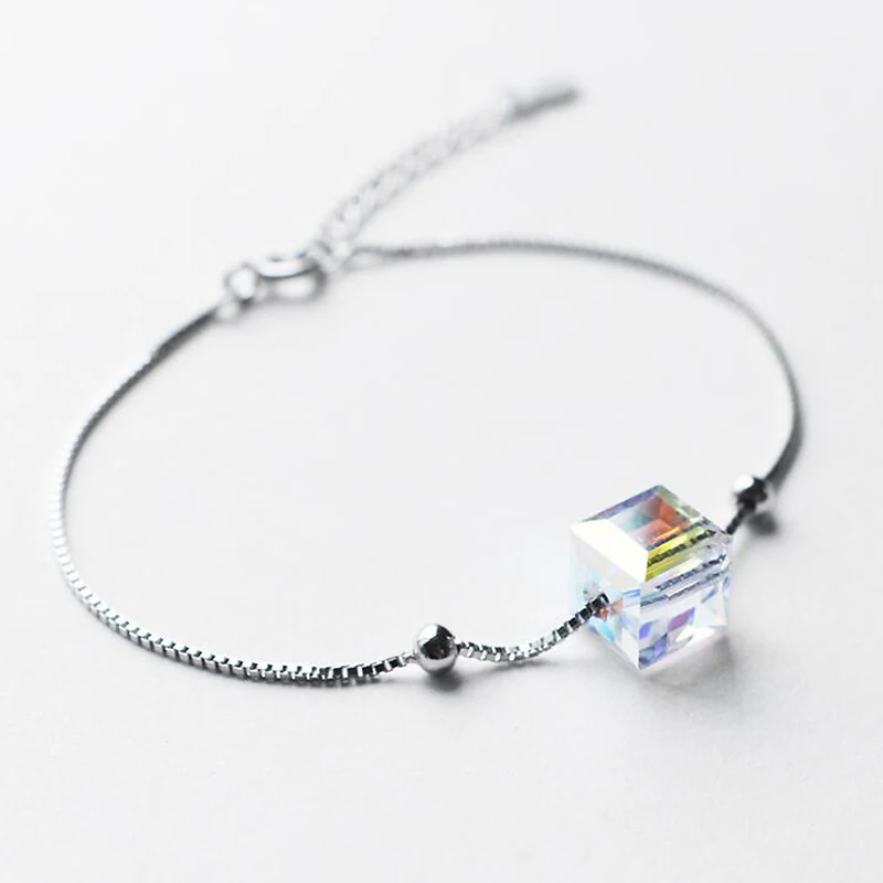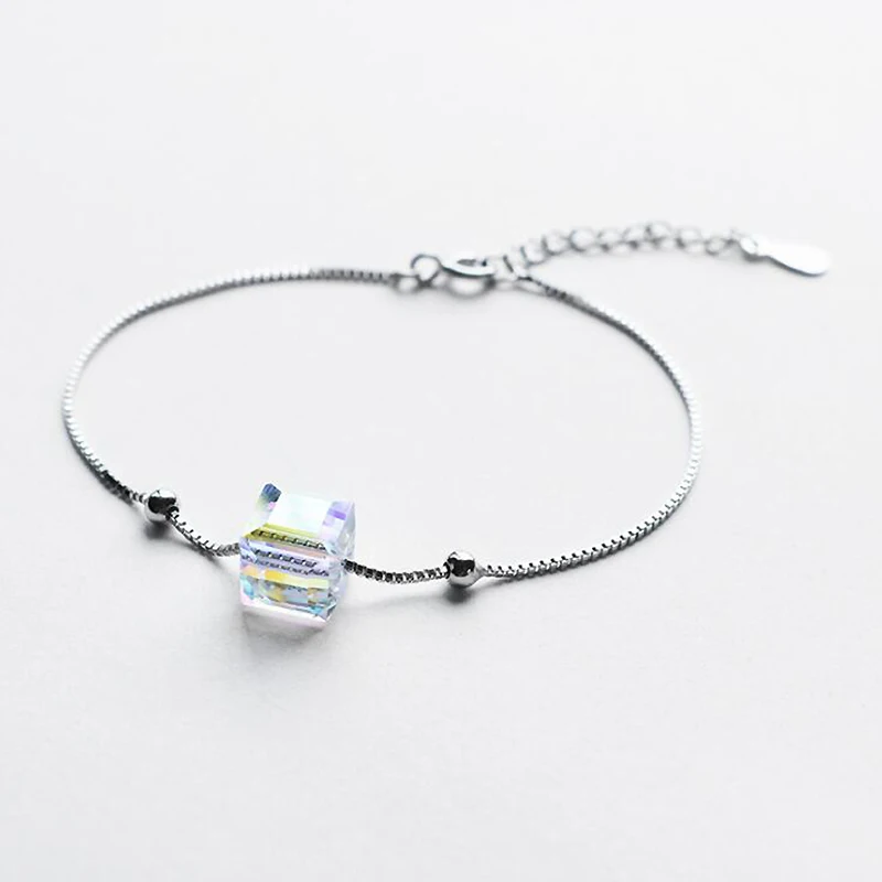 Square Shape Clear/Aurora Color Austrian Crystal Bracelets for Girls 100% 925 Silver Bracelet Ladies Party Jewelry YBR048