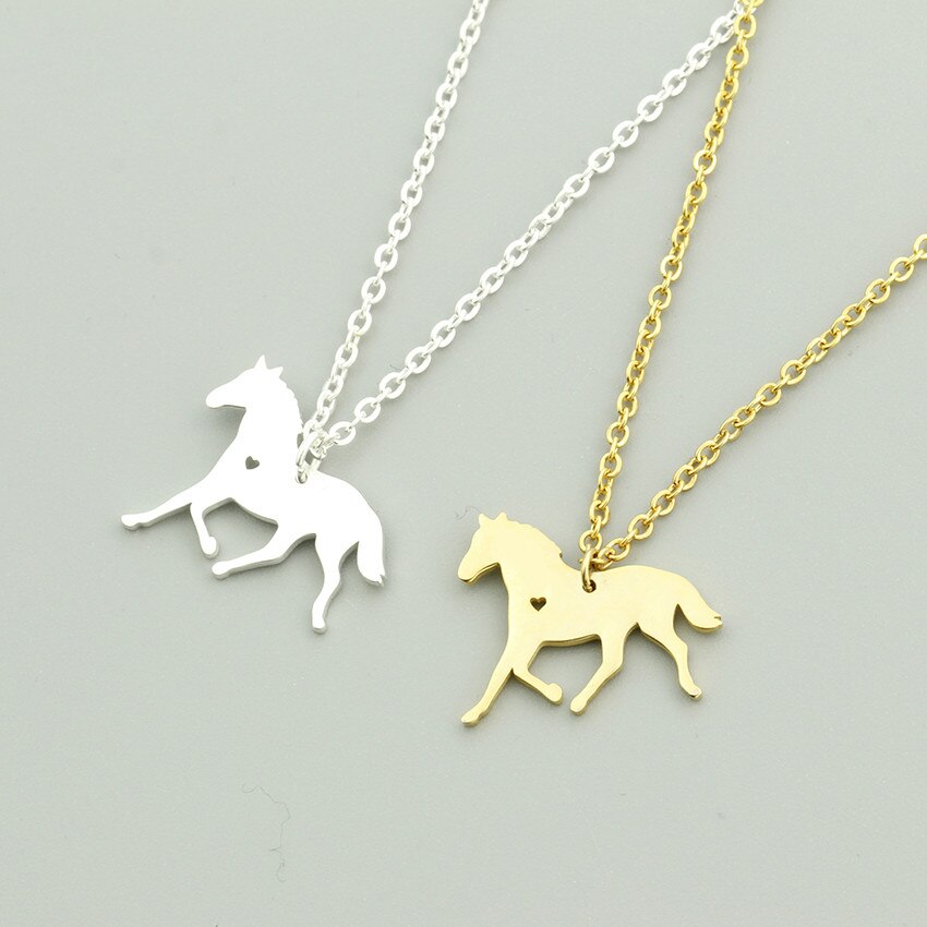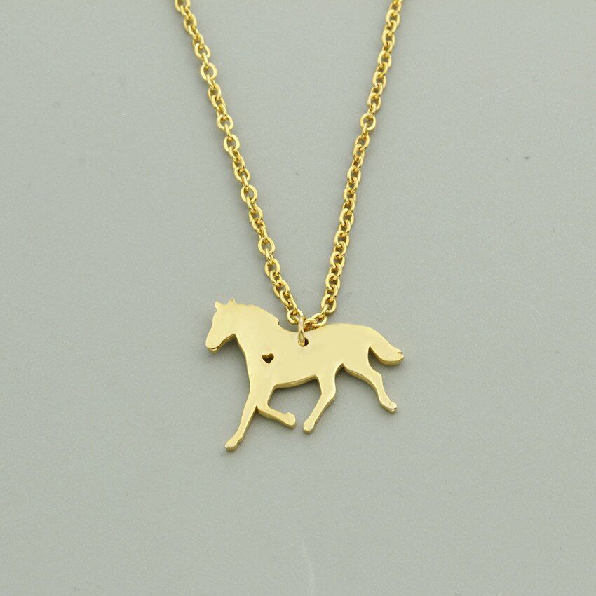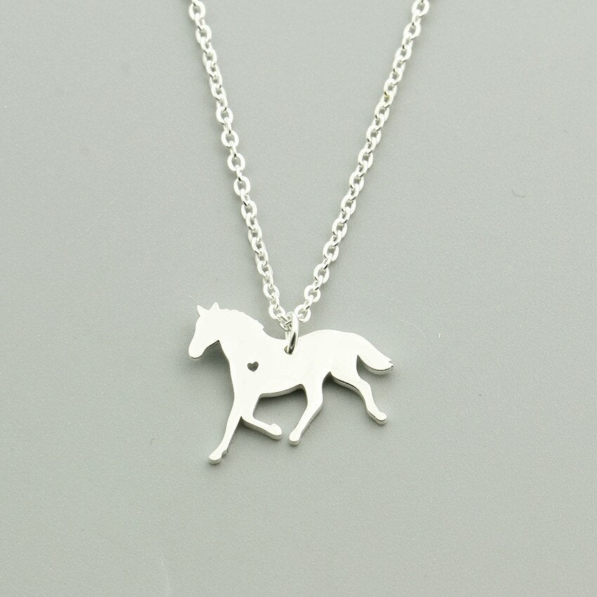 Running Horse Necklace Heart Jewelry Stainless Steel Animal Steed Pendant Necklace Friends Gifts