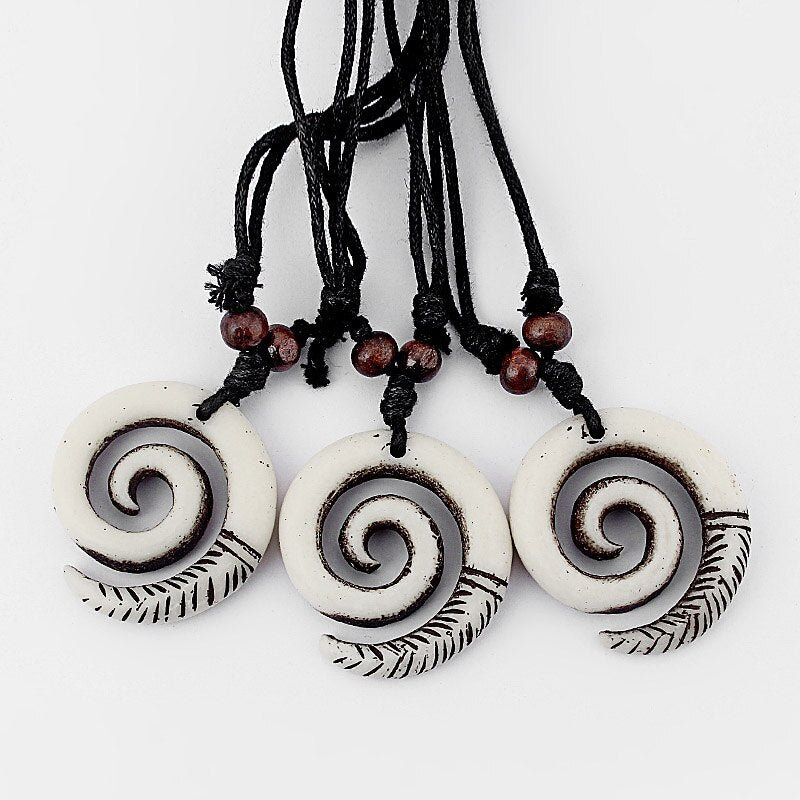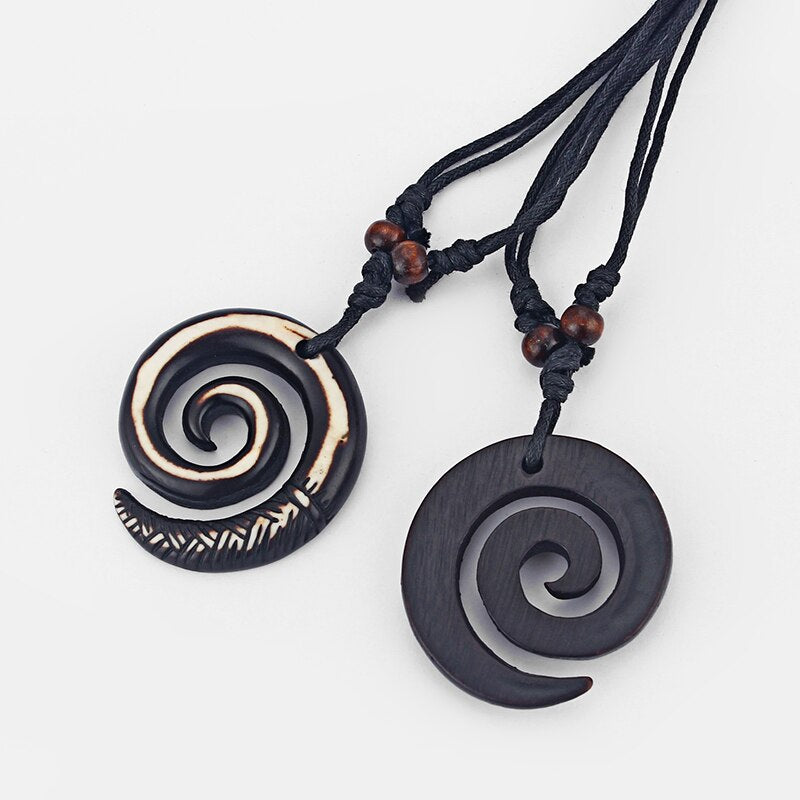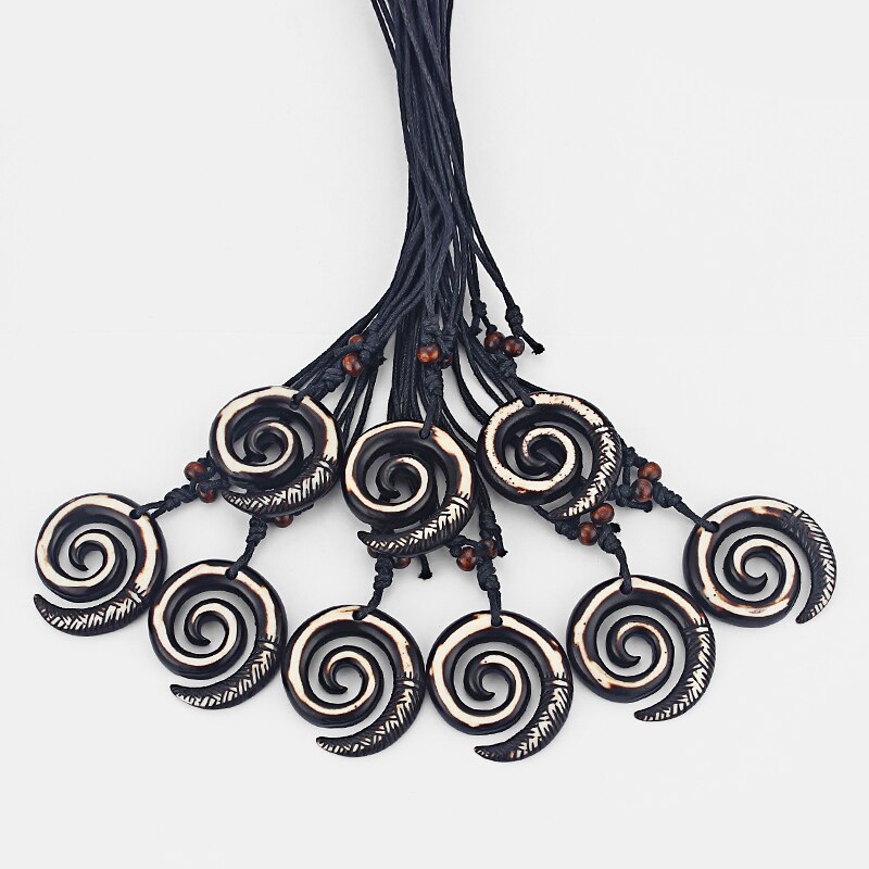 s 6pcs Resin Tribal Black/White/Brown/Rasta Keltic Spiral Swirl Charms Pendants Necklace Adjustable