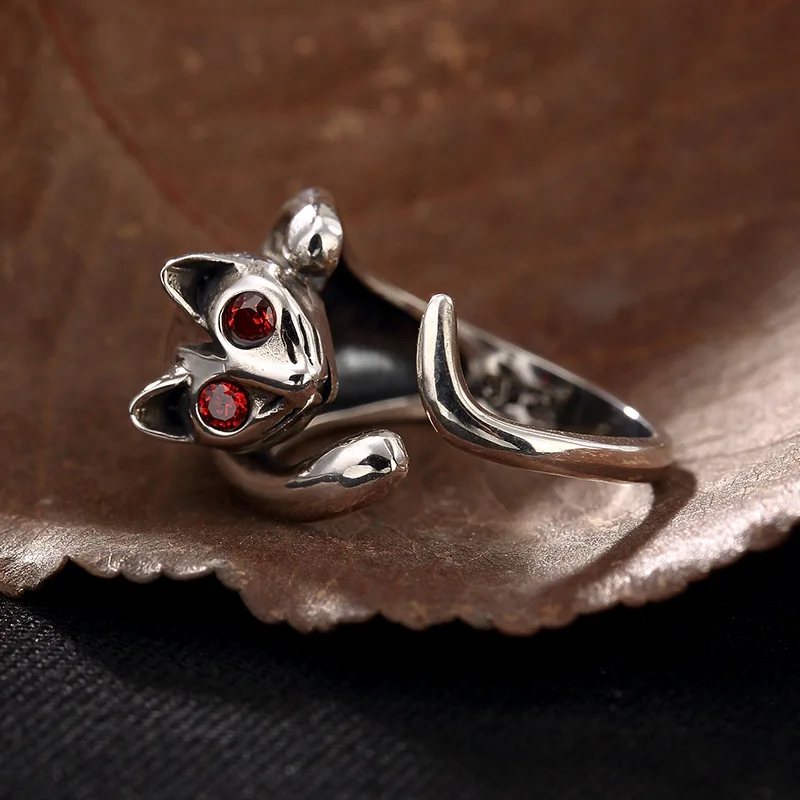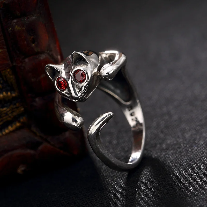 S925 Pure Silver Personality Plutus Cat Joker Thai Silver Restoring Ancient Ways Ms Opening Ring Ring Wholesale Agents