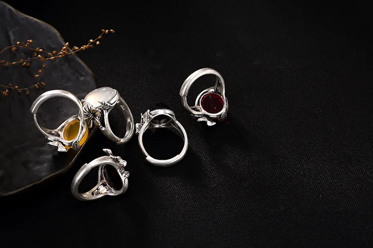 S925 Pure Sliver Fashion Plum Flower Engagement Ring Jewelry Retro High-end Ring Jewelry Gift for Women Lover