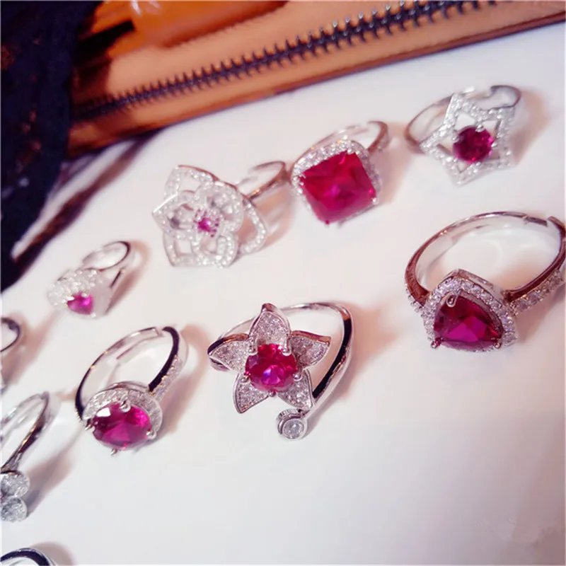 S925 Rings For Women sterling-silver-jewelry Ruby Vintage Simple Fine Jewelry Natural Gems Adjustable Ring Luxury Elegant Bague
