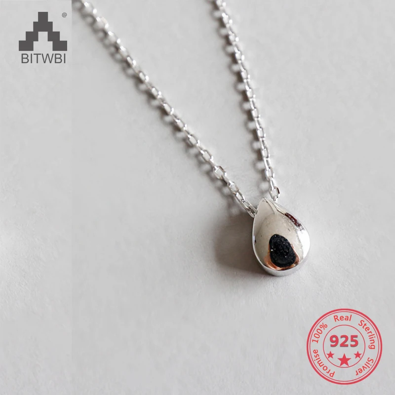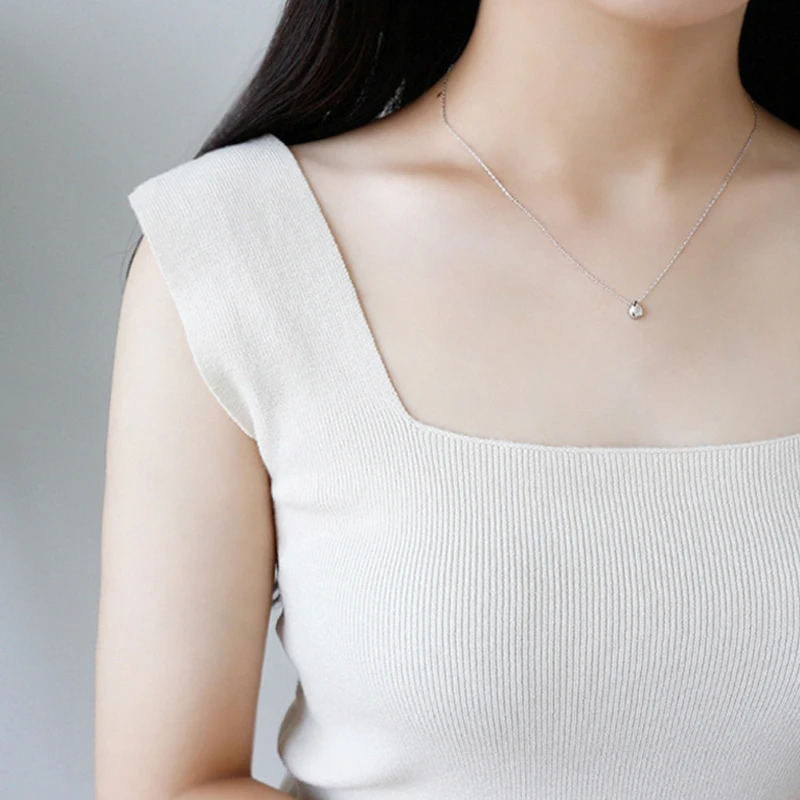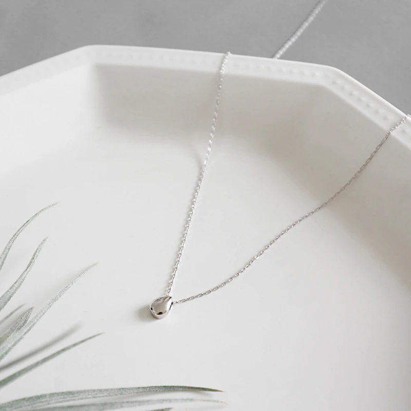 S925 Silver Silver Personality Design Minimalist Water Drop Shaped Mini Necklace