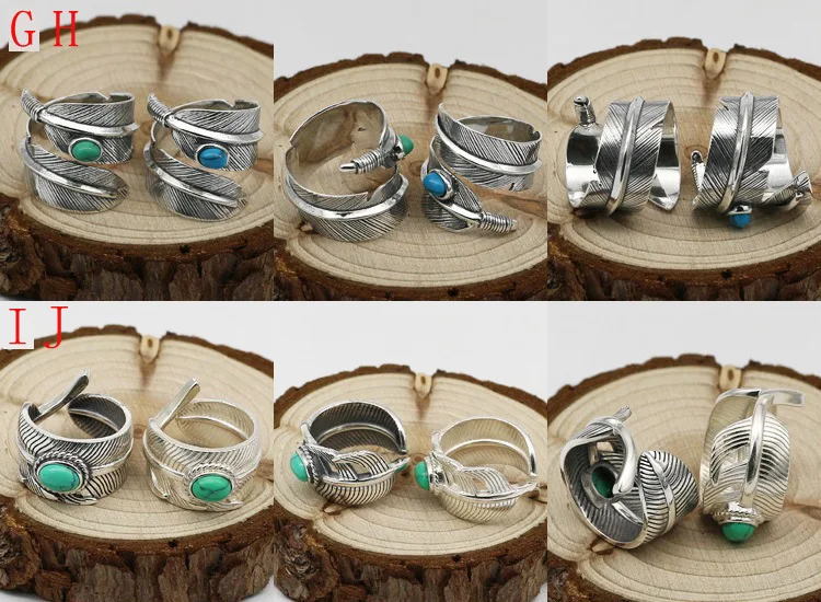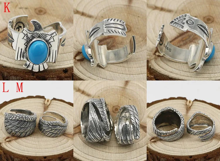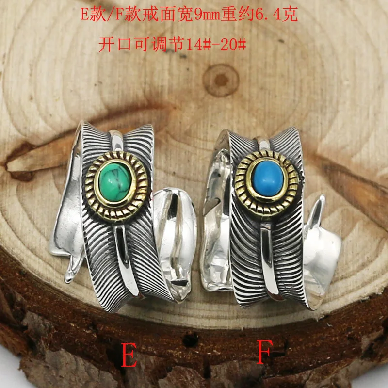 S925 Sterling Silver Eagle Series Jewelry Retro Thai Silver Men And Women Takahashi Goro Turquoise Feather Ring Open Ended