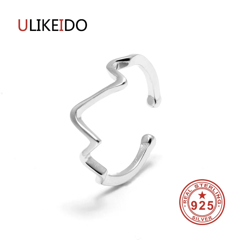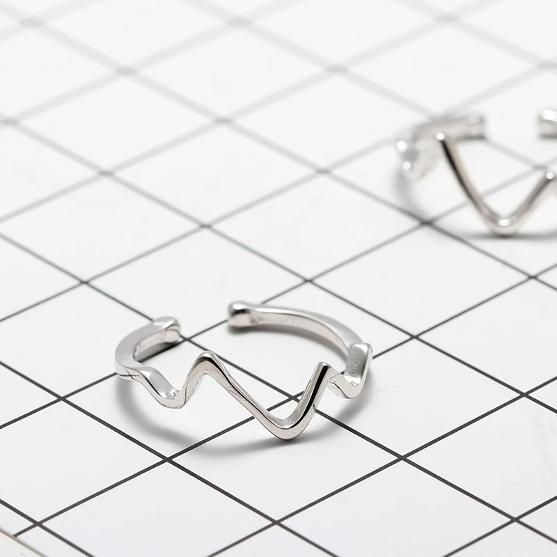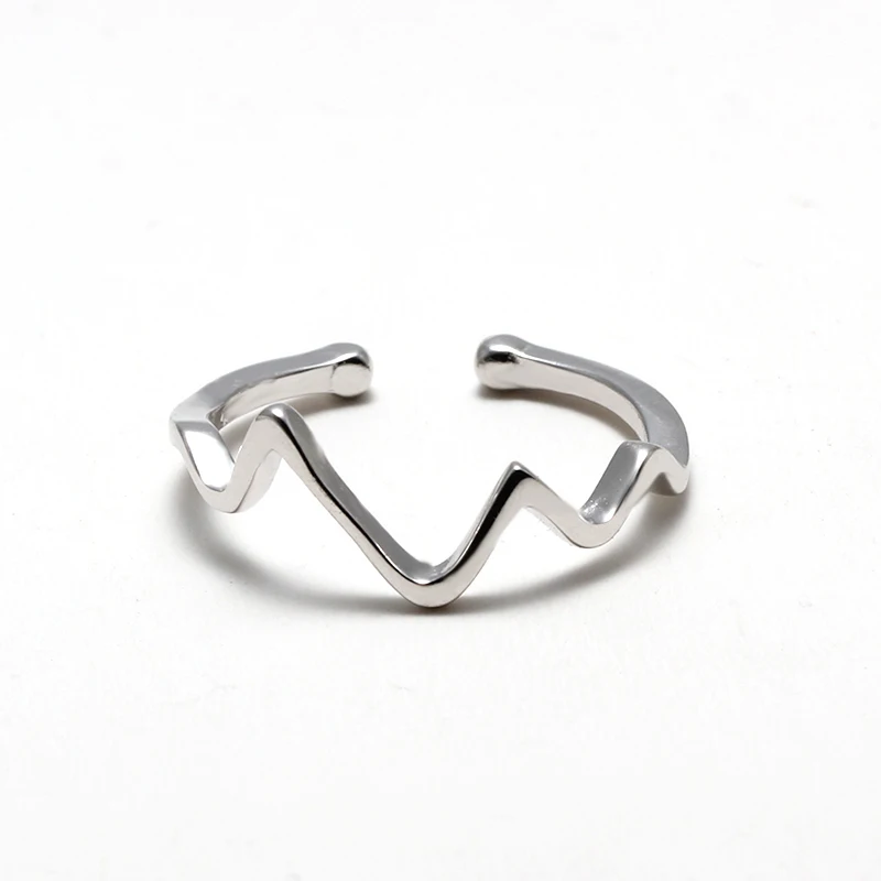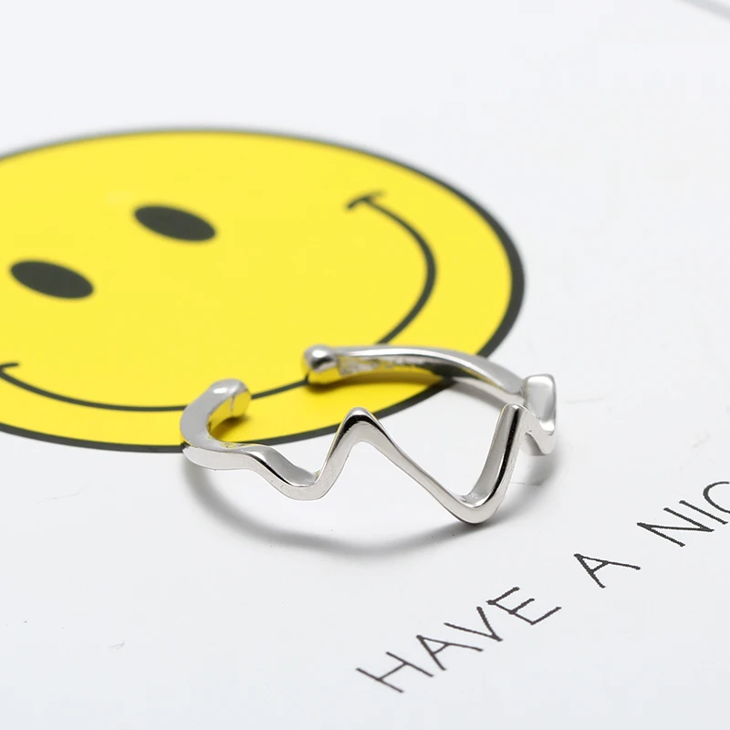 S925 Sterling Silver Jewelry Electrocardiogram Rings Fashion Classic Open Ring For Men And Women Lovers' Gift R73