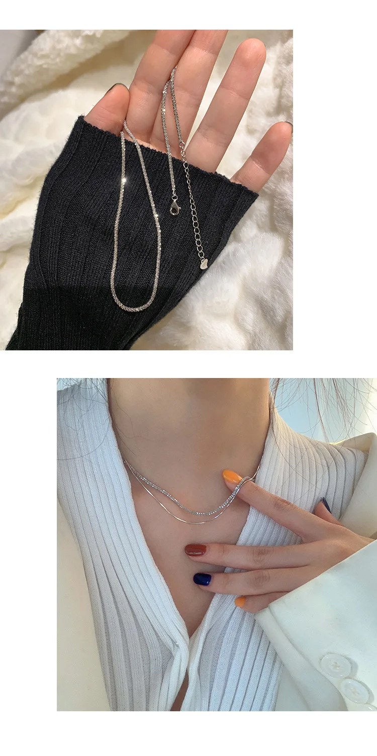 S925 Sterling Silver Shiny Snake Bone Clavicle Chain Necklace Women Light Temperament Party Jewelry Girlfriend Gift