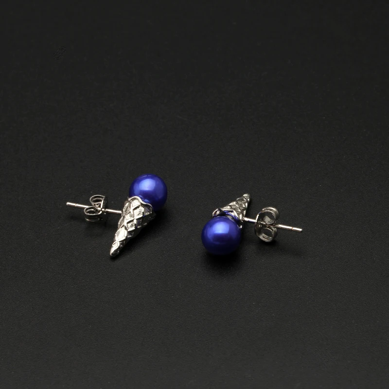 S925 Sterling silver Sweet tube round pearl earring customized multicolor pearl earring for children christmas gift