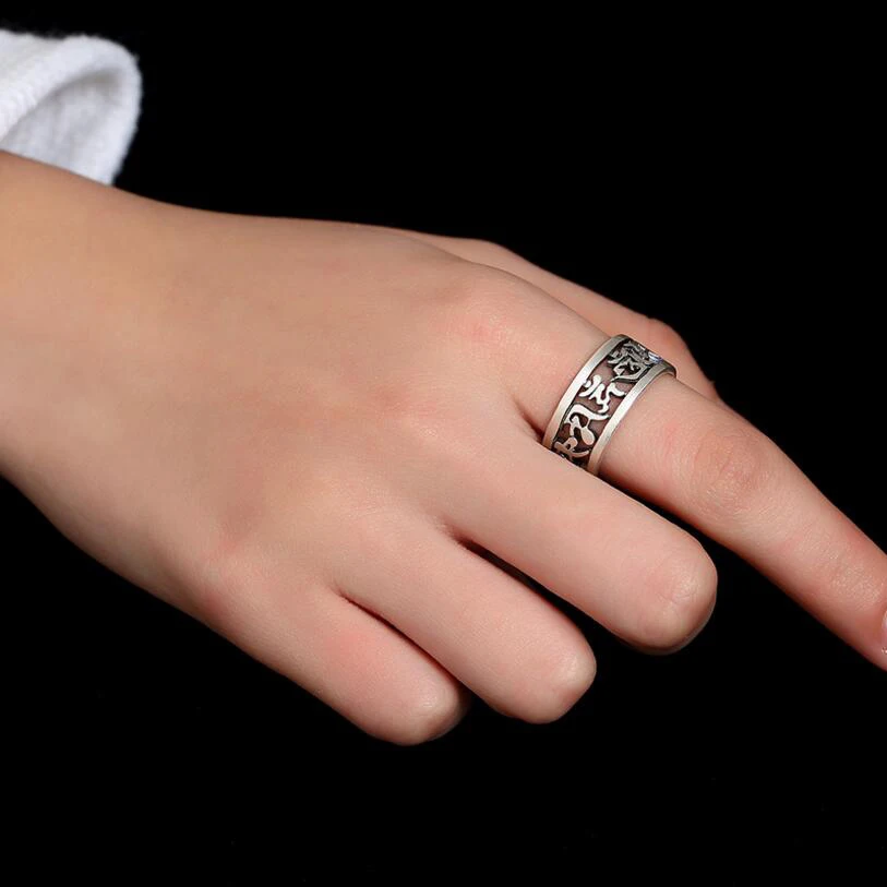 S925 Sterling Silver Vintage Antique Style Tibetan Mani Mantra Lovers Ring