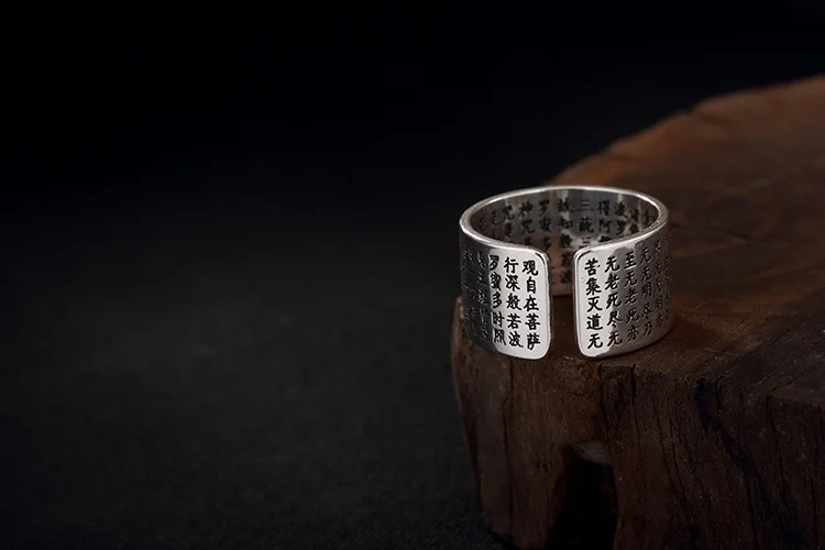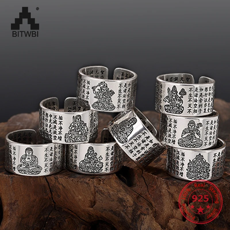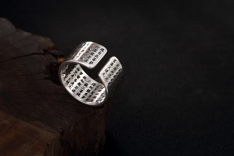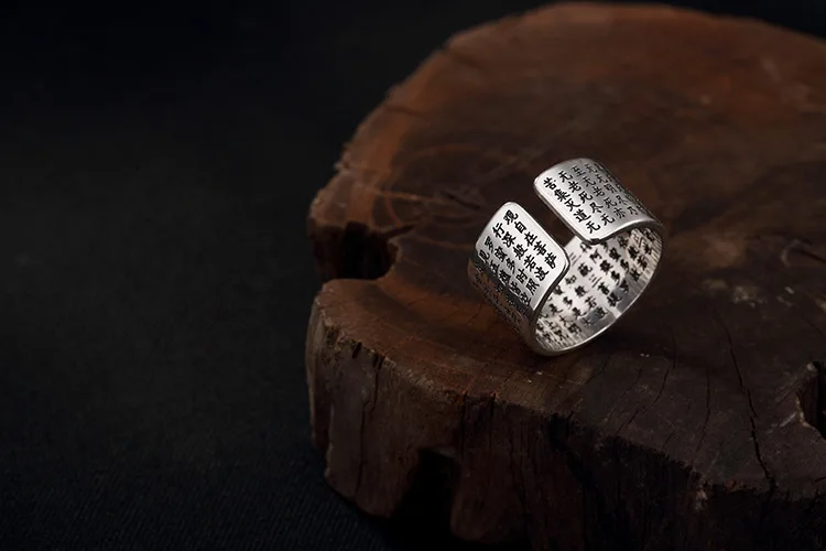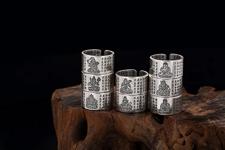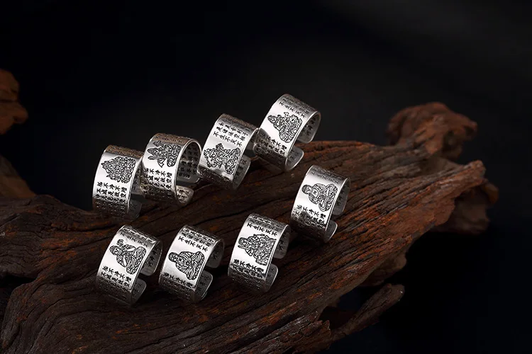 S925 Sterling Sliver Vintage Fashion Buddha Ring for Men and Women Thai Silver Open Ring