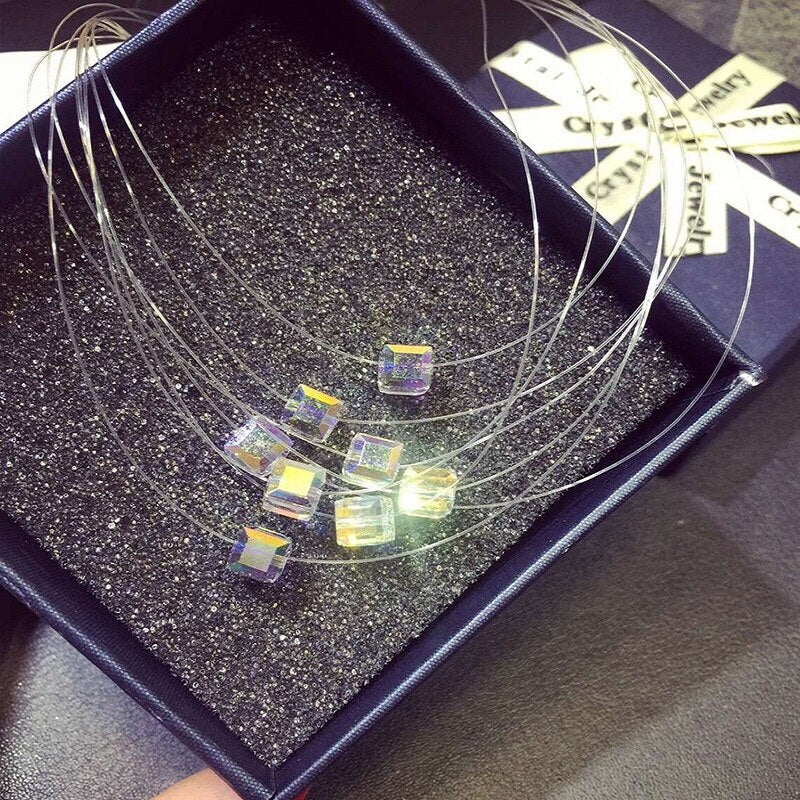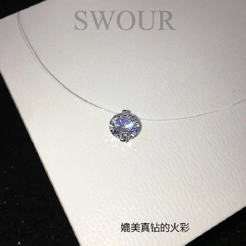 S925 transparent fishline Necklace female clavicle chain invisible zircon Mermaid Bone Pendant neck chain simple necklace