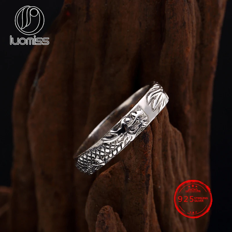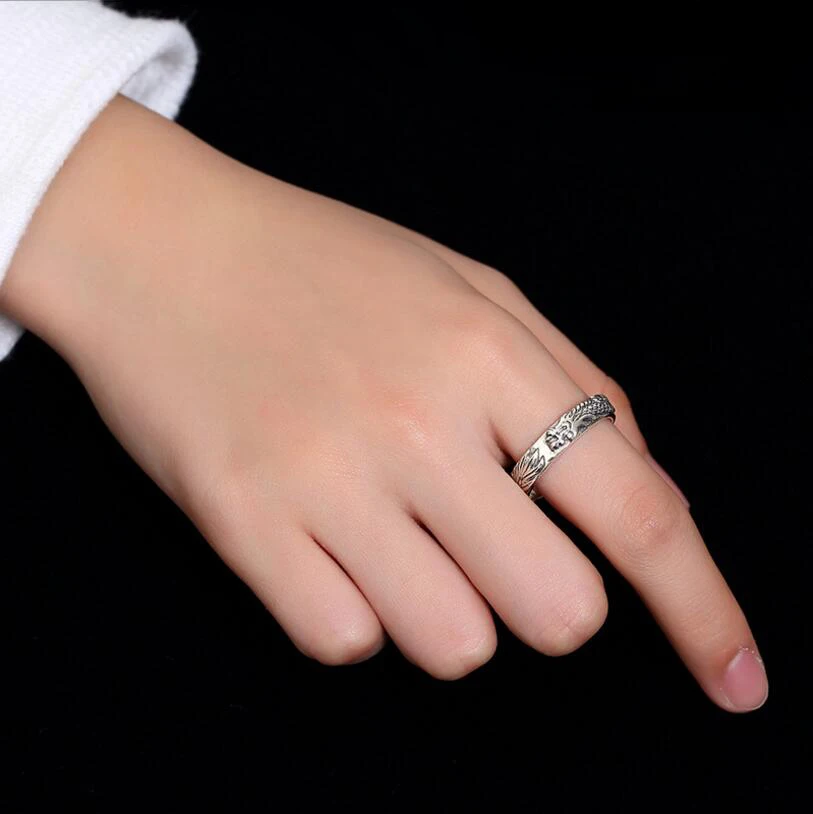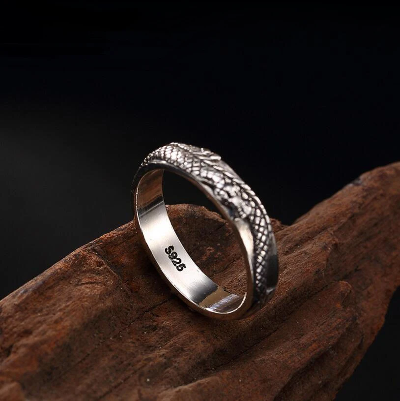 S990 Pure Silver Unique Handmade Minimalist Dragon Ring For Women Men Lover