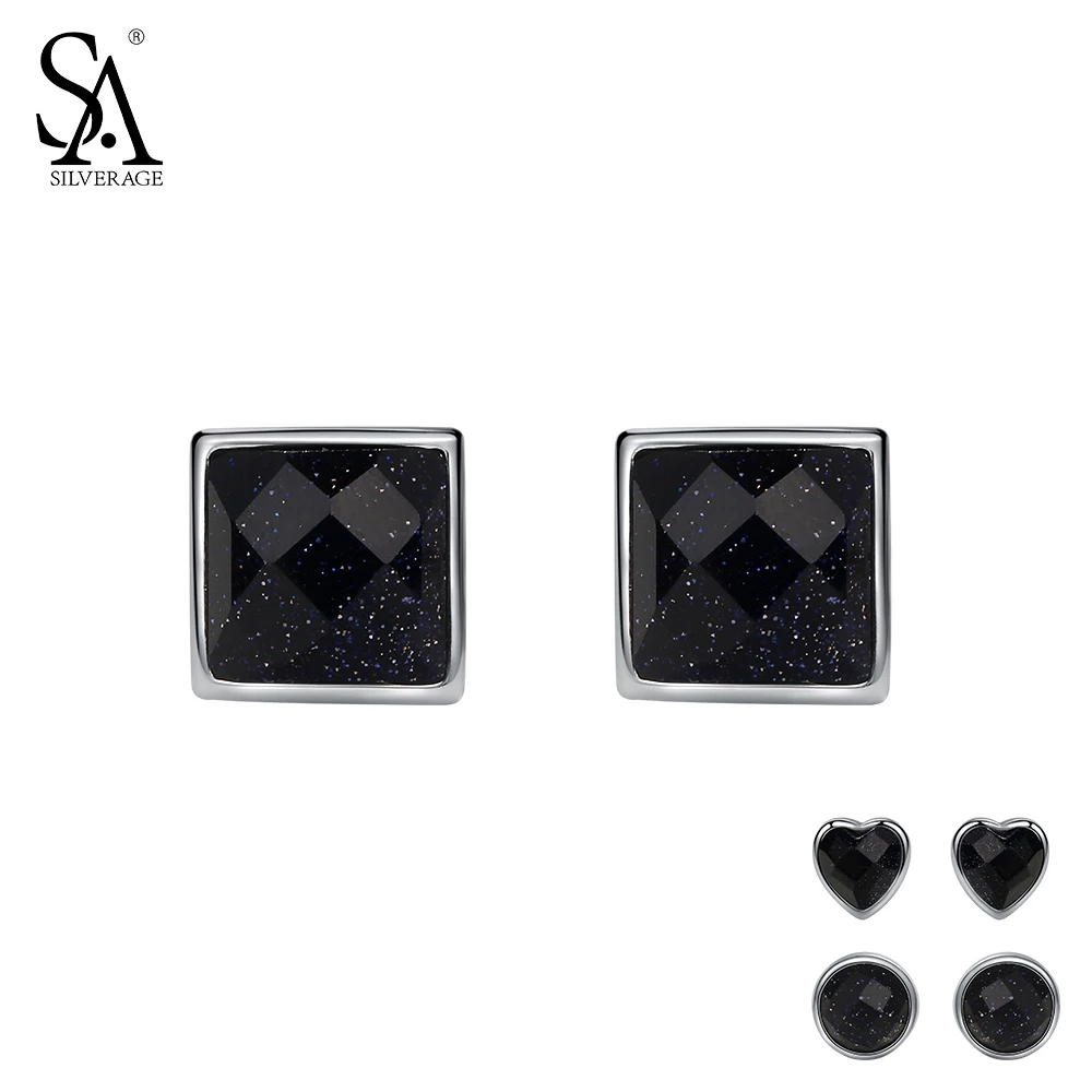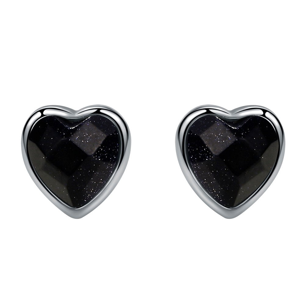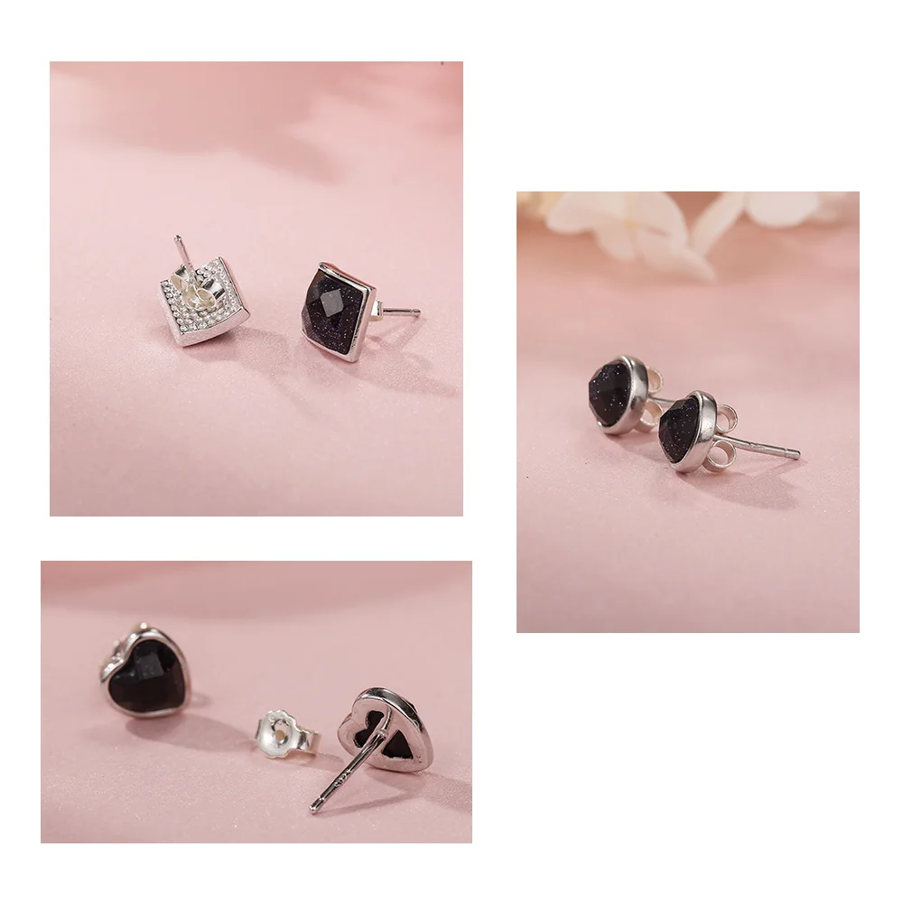 925 Silver Stud Earrings for Women Square Black Diamand Heart Love Mini Jewelry Fashion Sterling Stud Ears