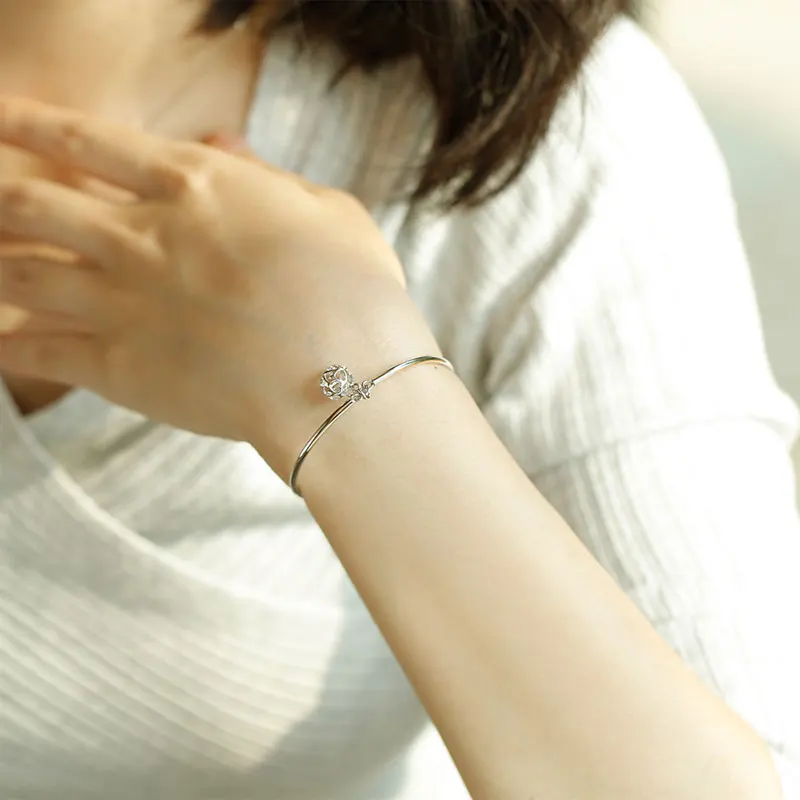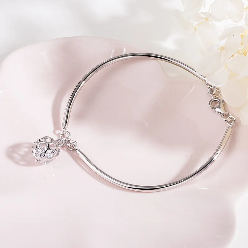 925 Sterling Silver Bangles Women Ball Charm Adjustable Bangle Bracelet Pure Silver Jewelry 2020 Best Gift
