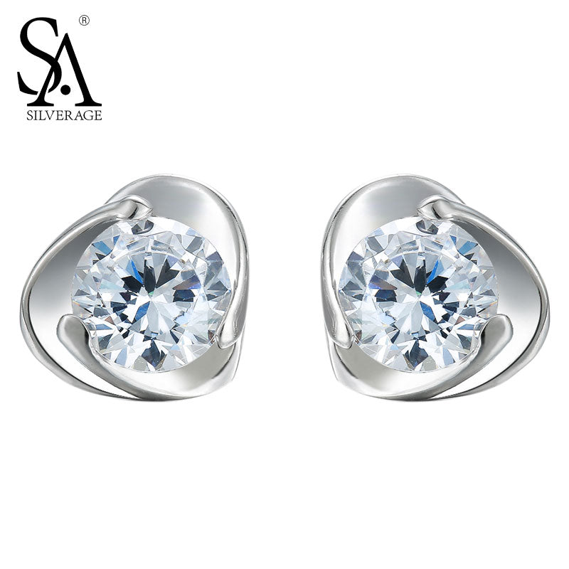 925 Sterling Silver Earrings With CZ Heart Stud Earrings For Women Girl College Fine Jewelry 2020 Party Gift