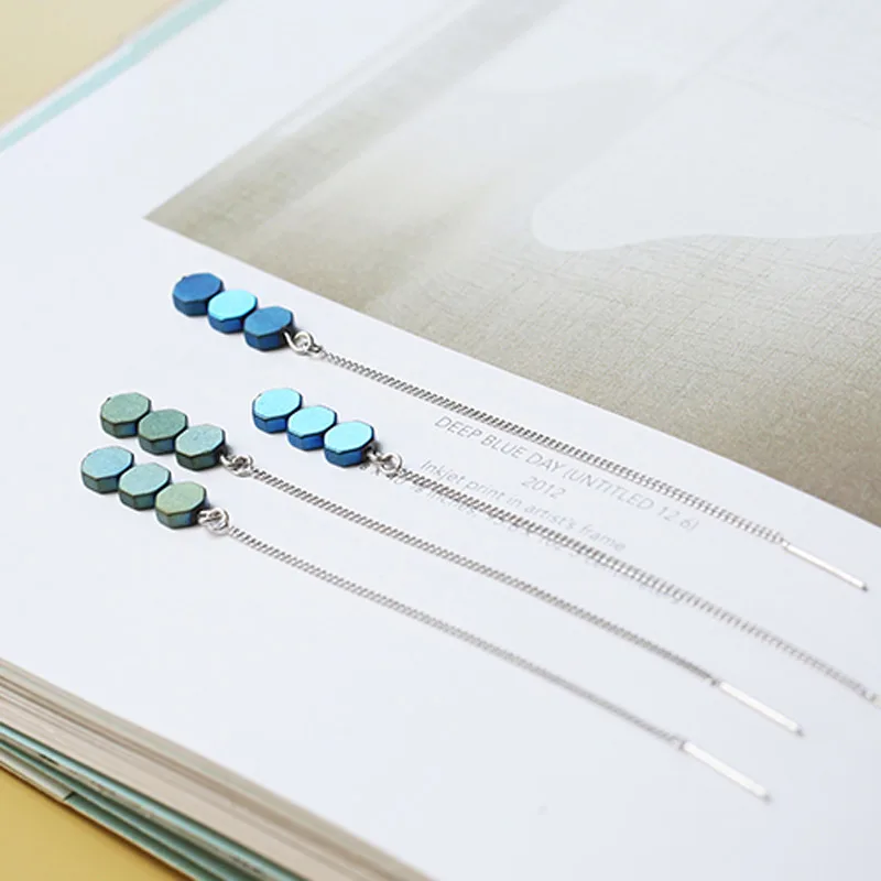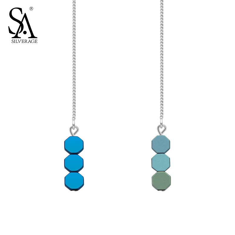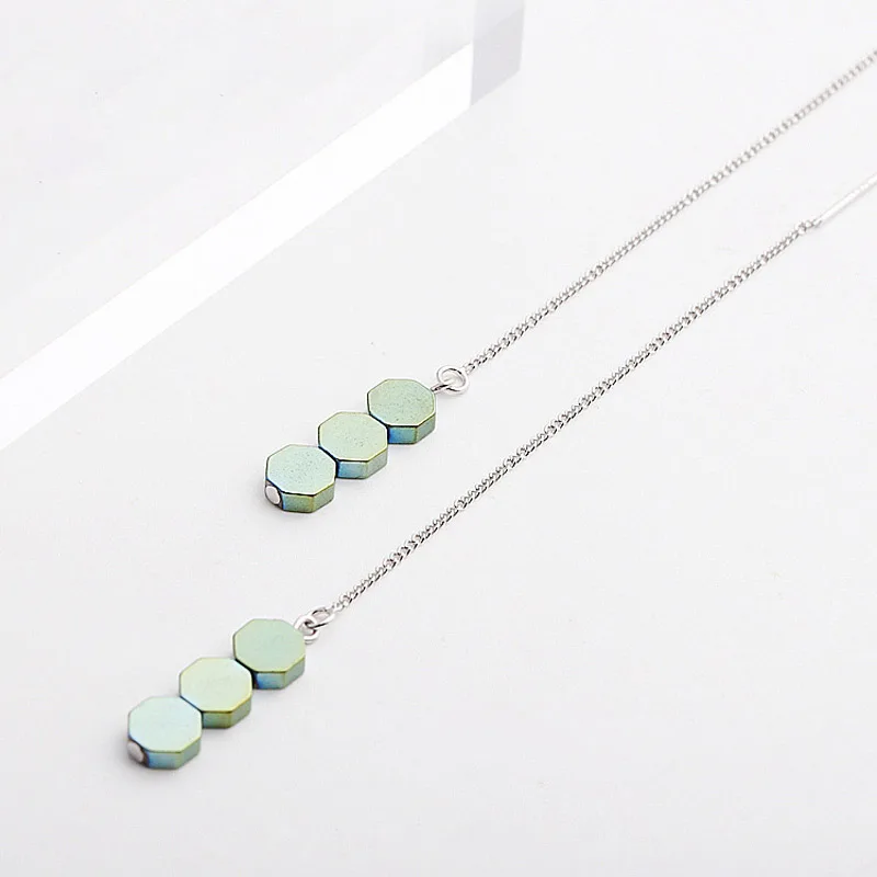 925 Sterling Silver Green/Blue Color Hexagon Shape Drop Earring for Woman 925 Silver Drop Earrings Jewelry Earring