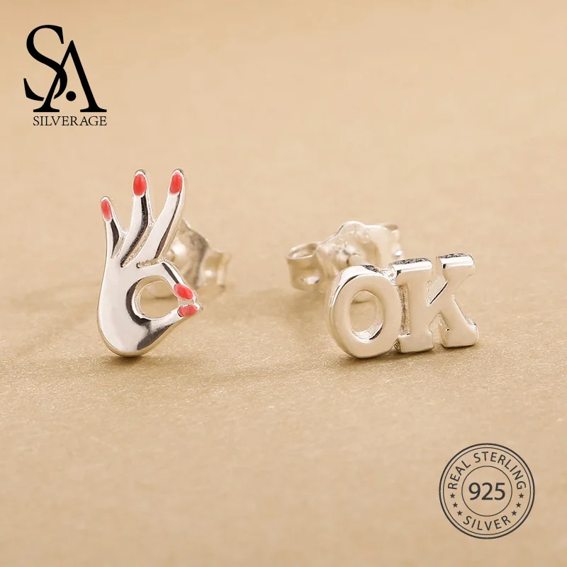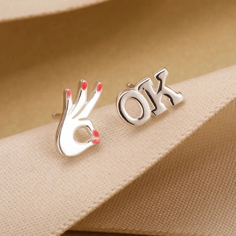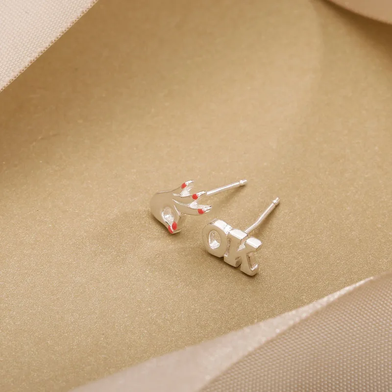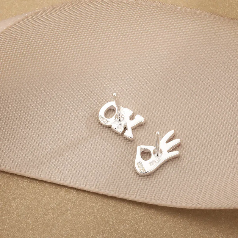 925 Sterling Silver Stud Earrings OK Hand Shape for Daughter & Mom Earrings Women Party Gift Accessories