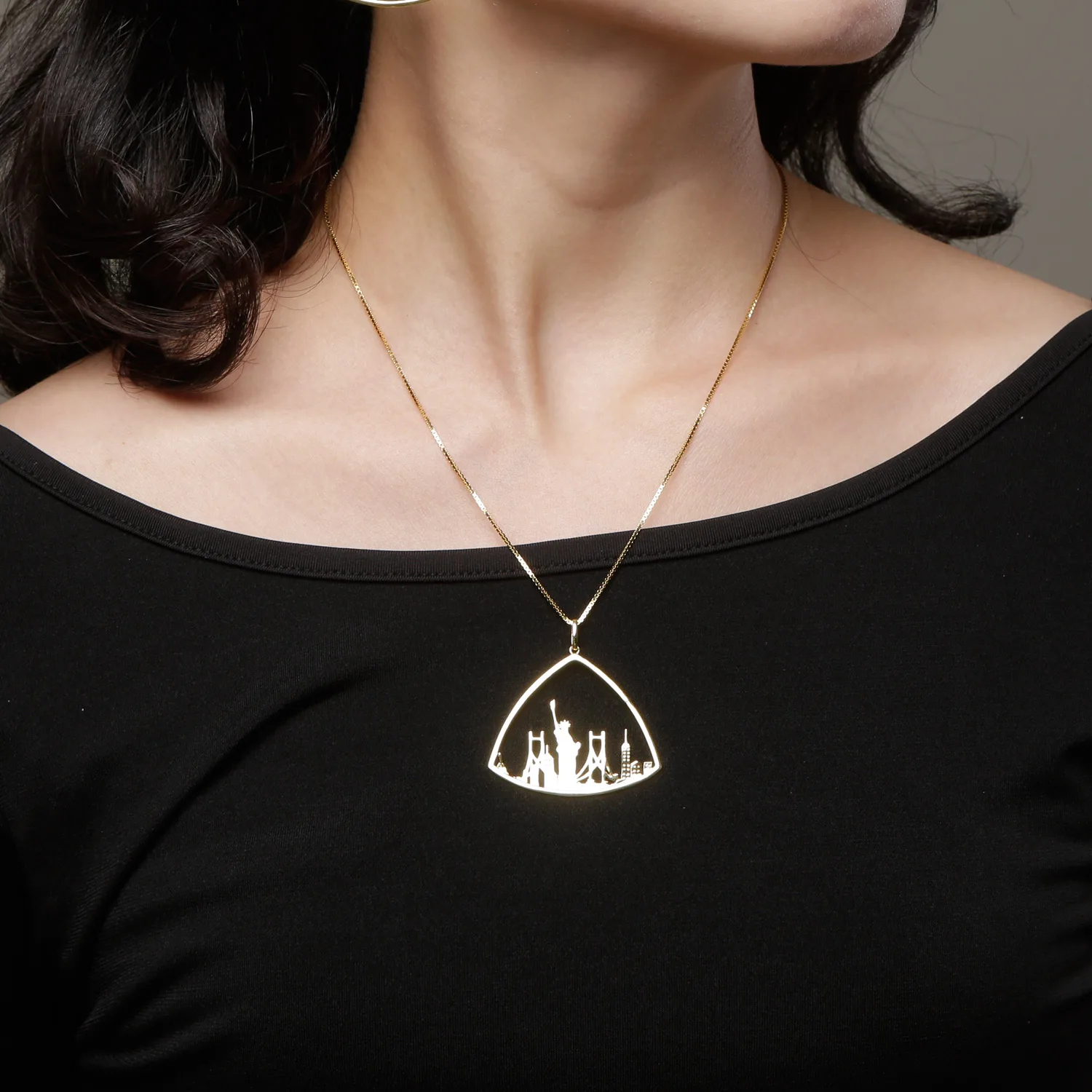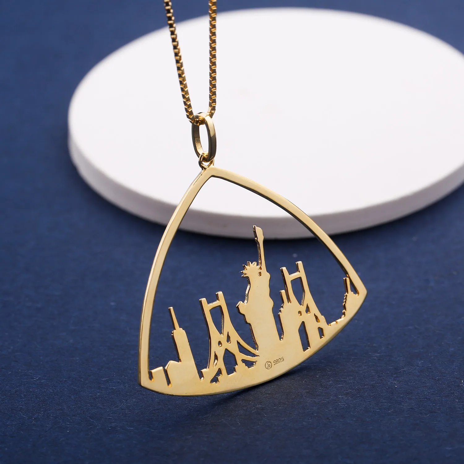 925 Sterling Silver Triangle Gold Color Plated Drop Earrings Pendant Necklace Jewelry Sets for Woman 925 Silver Set