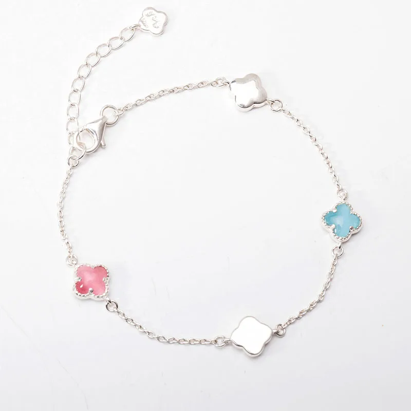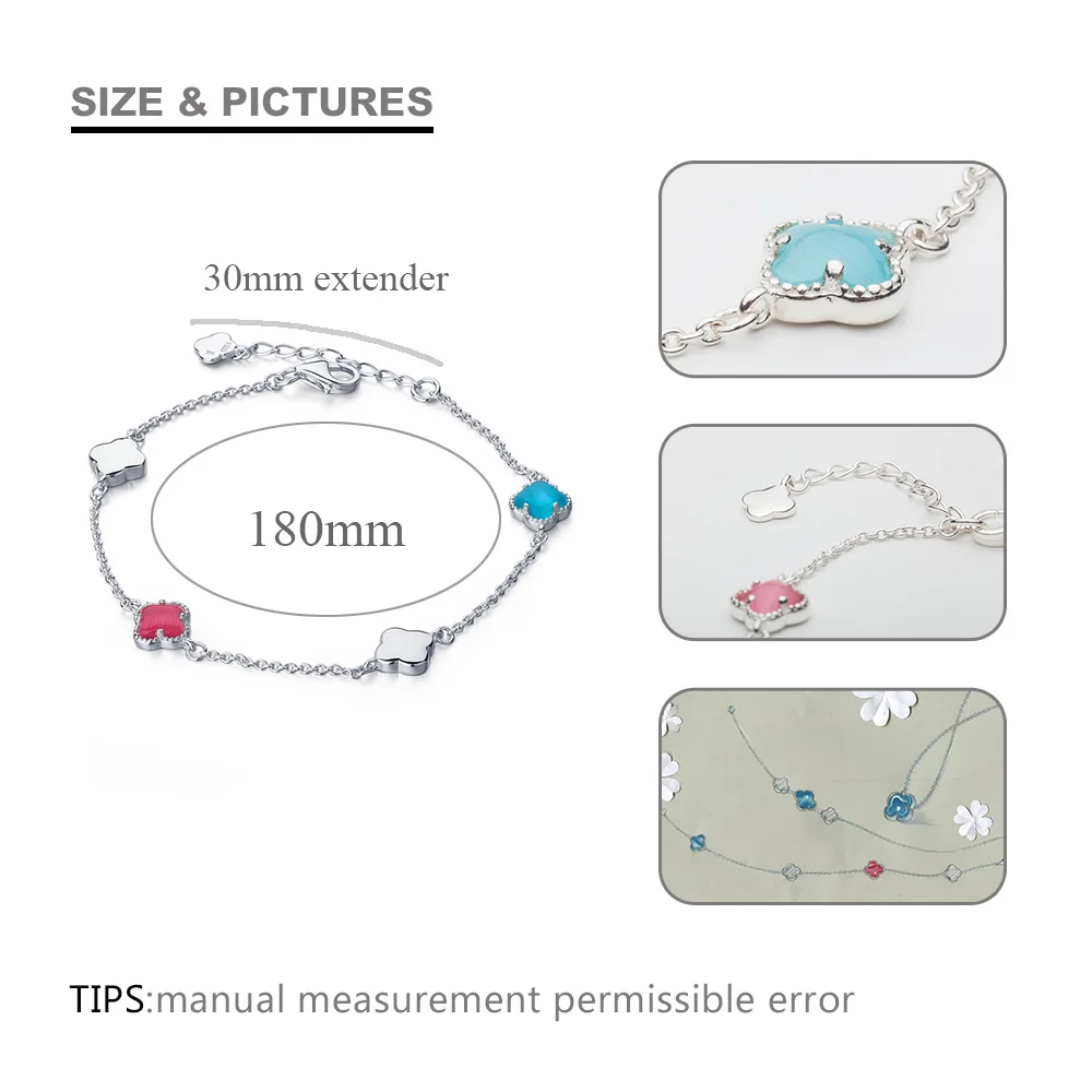 Blue Red Opal Gemstone Bracelets for Women New Design 925 Sterling Silver Fine Jewelry Four Leaf Clover Bracelets