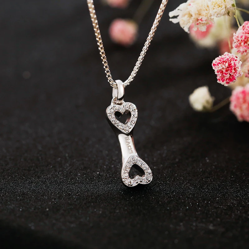 Collier Argent Love Rib Bone Pendant For Women Real Pure 925 Sterling Silver Necklace Fine Jewelry Gift