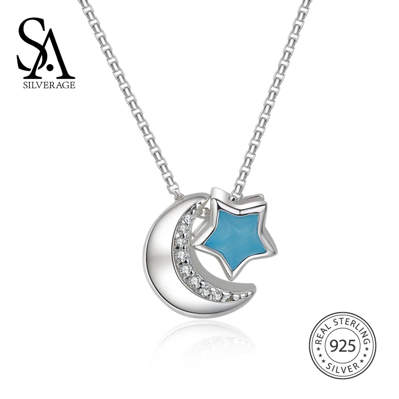 Moon Star Pendants Necklaces For Women Jewely 925 Sterling Silver Blue Opal Three Types Of Pendants With Zircon
