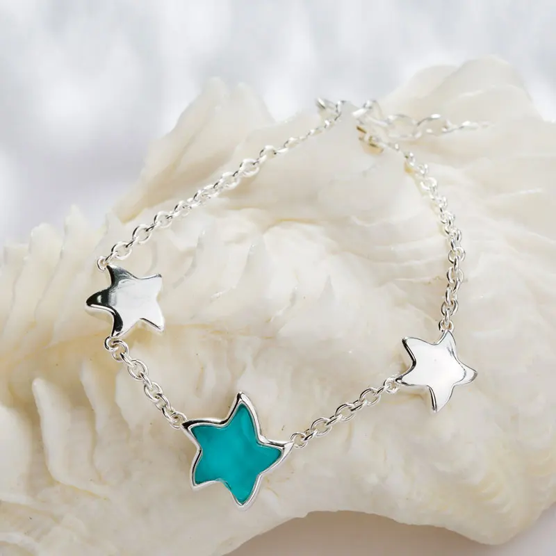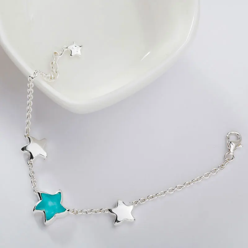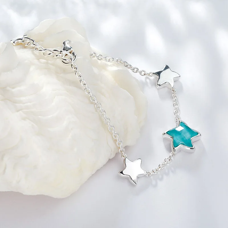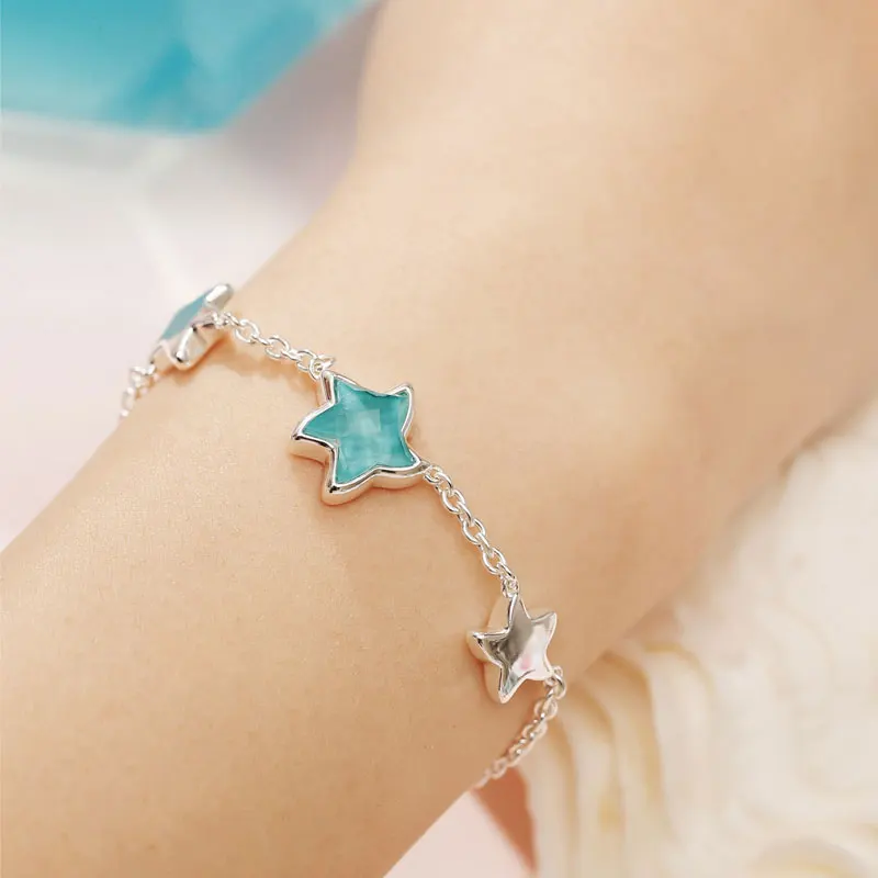New Real 925 Sterling Silver Turquoise Bracelet star bracelet silver 925 jewelry women wedding gift with gift box