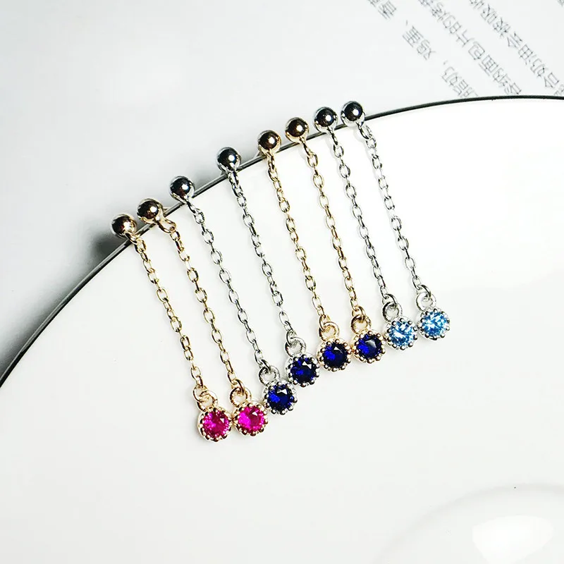 Real 925 Sterling Silver Multiple Colour Drop Earrings For Women Fine Jewelry 2020 Rhinestone Earrings