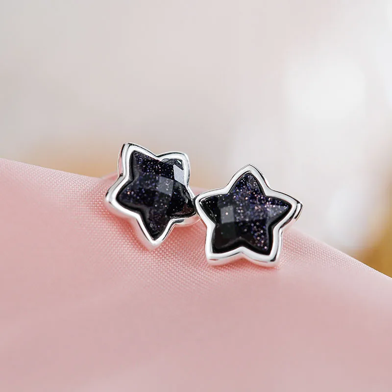 Silver 925 Earing Black Gemstone Star Stud Earrings Sterling Silver Jewelry For Women Party Gift Women Accessory