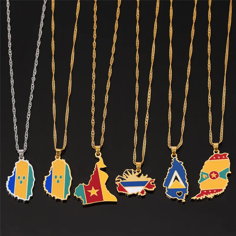 Saint Vincent Antigua Grenada Cameroon Saint Lucia Map Pendant Necklace For Women Men National Flag Item Ethnic Jewelry Gifts