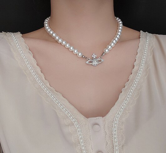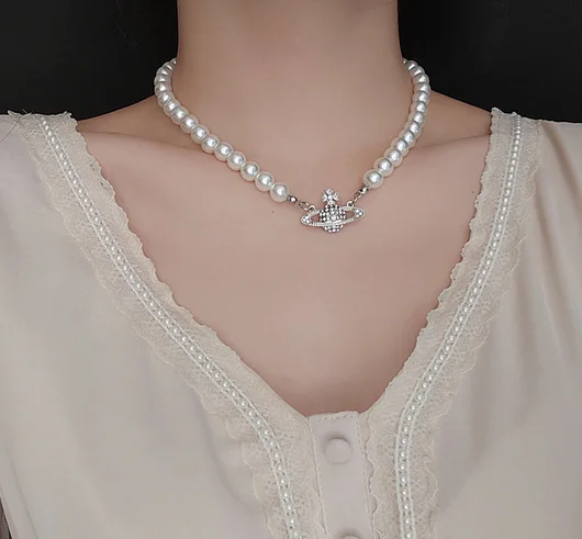 Saturn Pearl Short Necklace/Bracelet INS Collarbone Chain Choker 2021