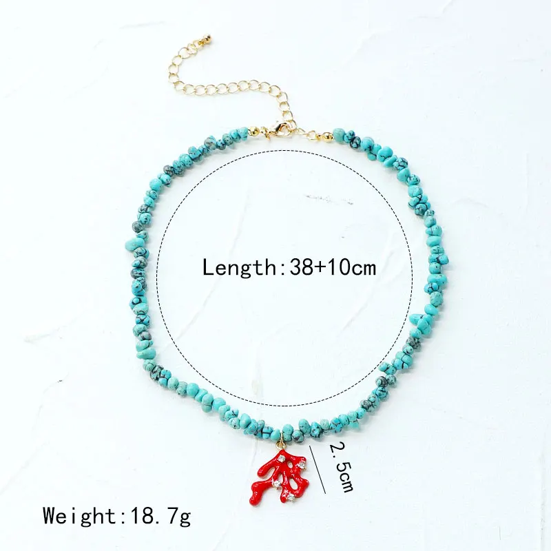 SAY Bohemian Colored Gravel Turquoises Semi Precious Stones Coral Alloy Charm Pendant Necklace Women Jewelry