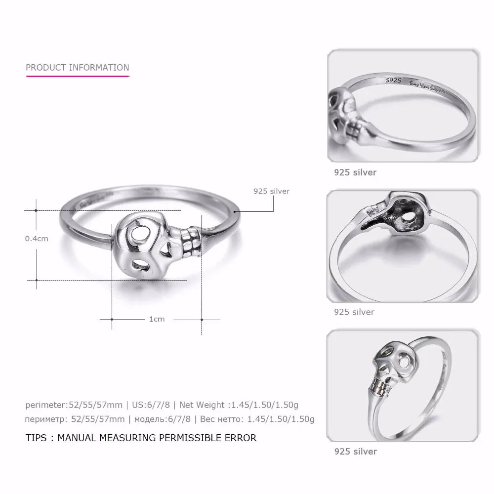 Skull 925 Sterling Silver Rings Co Unisex Party Punk Skeleton Rings 2020 Fine Jewelry Best Gift