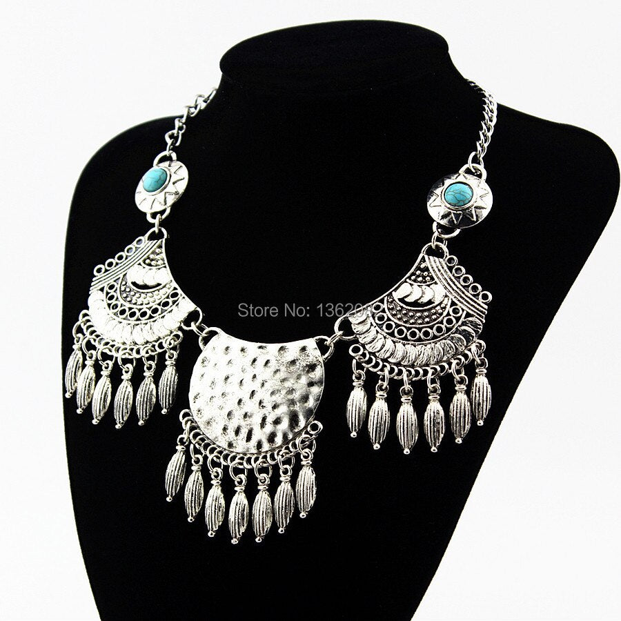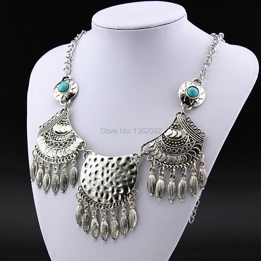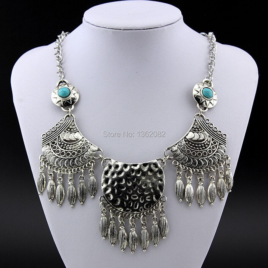 SENHUA Bohemian Tassel Antique Silver Pendant Colar Statement Necklaces Stone necklace jewelry for women Collier Femme MN608