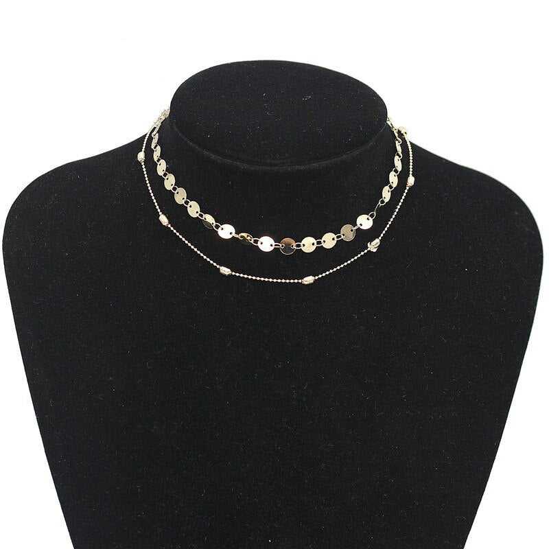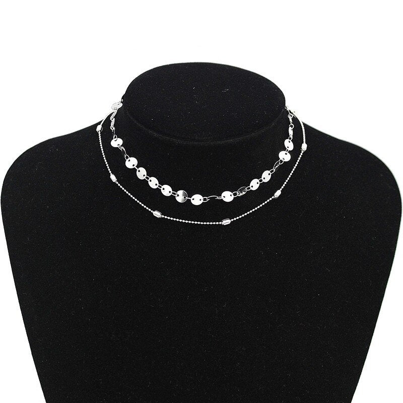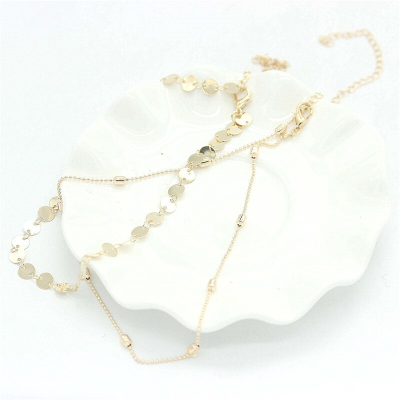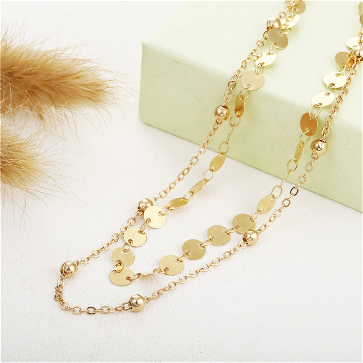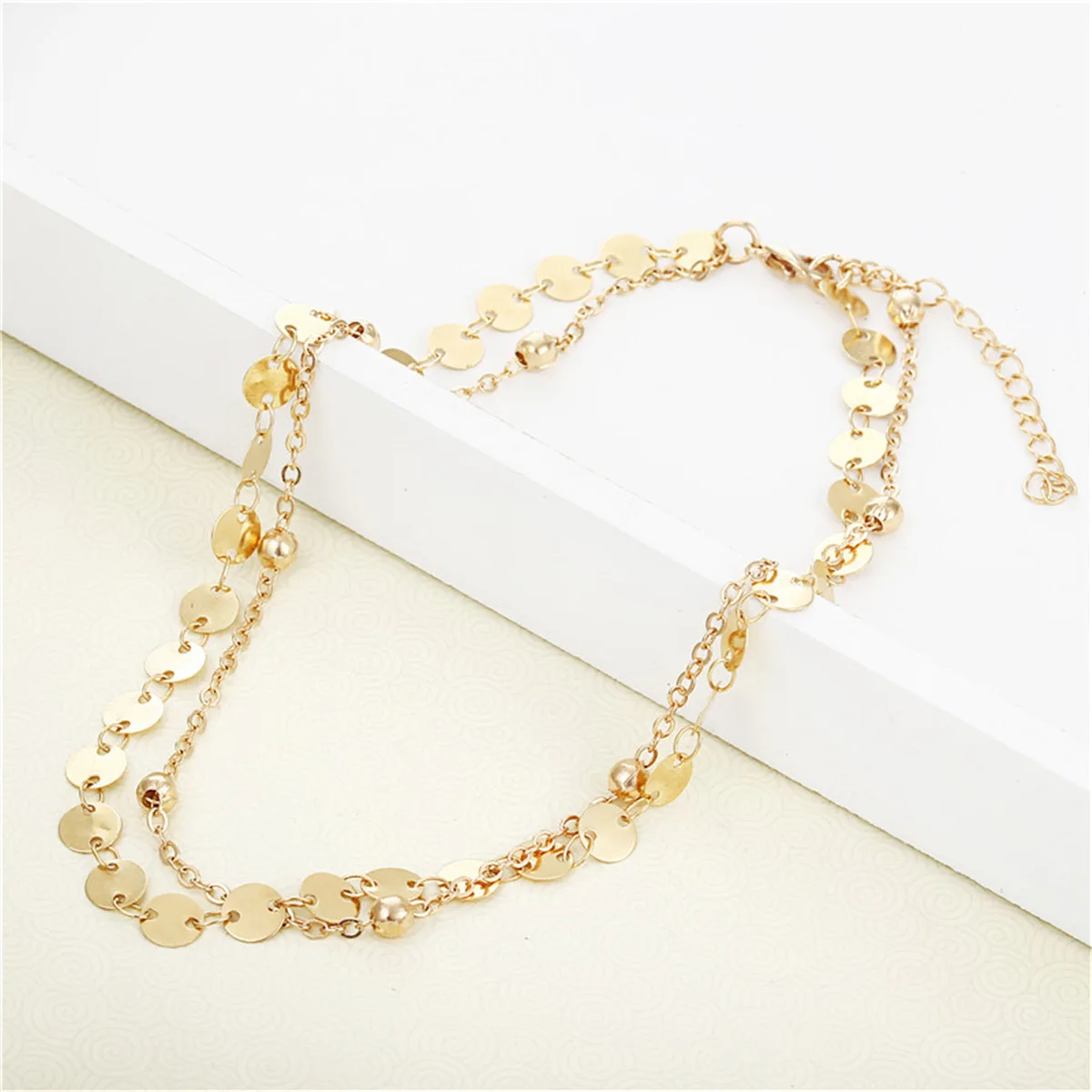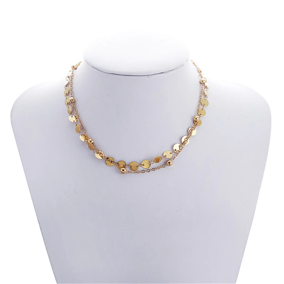 Sequins Short Bead Necklace Chain Simple Double Layer Clavicle Chain Lady Elegant Choker Necklace Pendant Jewelry