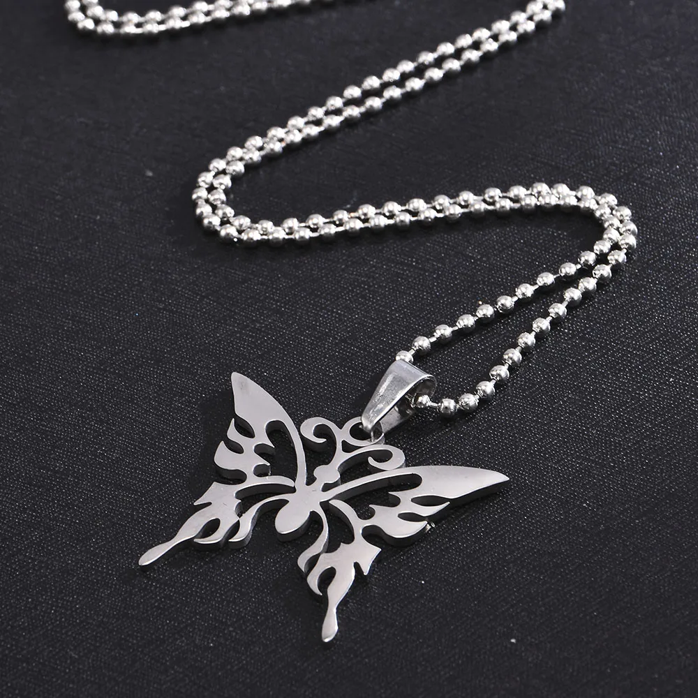 Sexy Butterfly Pendant Necklace Stainless Steel Goth Jewelry Men Women Necklace Punk Commemorate Costume Jewelry